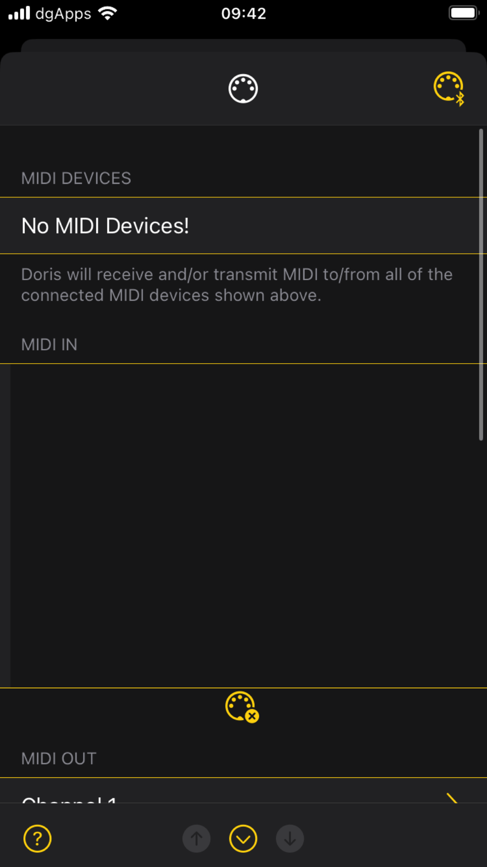 Doris by dgApps is the app to send and receive MIDI commands from your iPhone or iPad via fully configurable touch buttons.