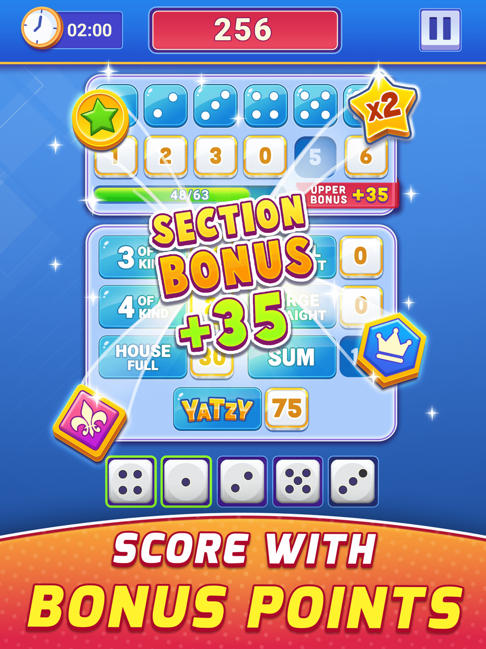1. Fill the slot by matching 5 dice and get as many points as you can win.