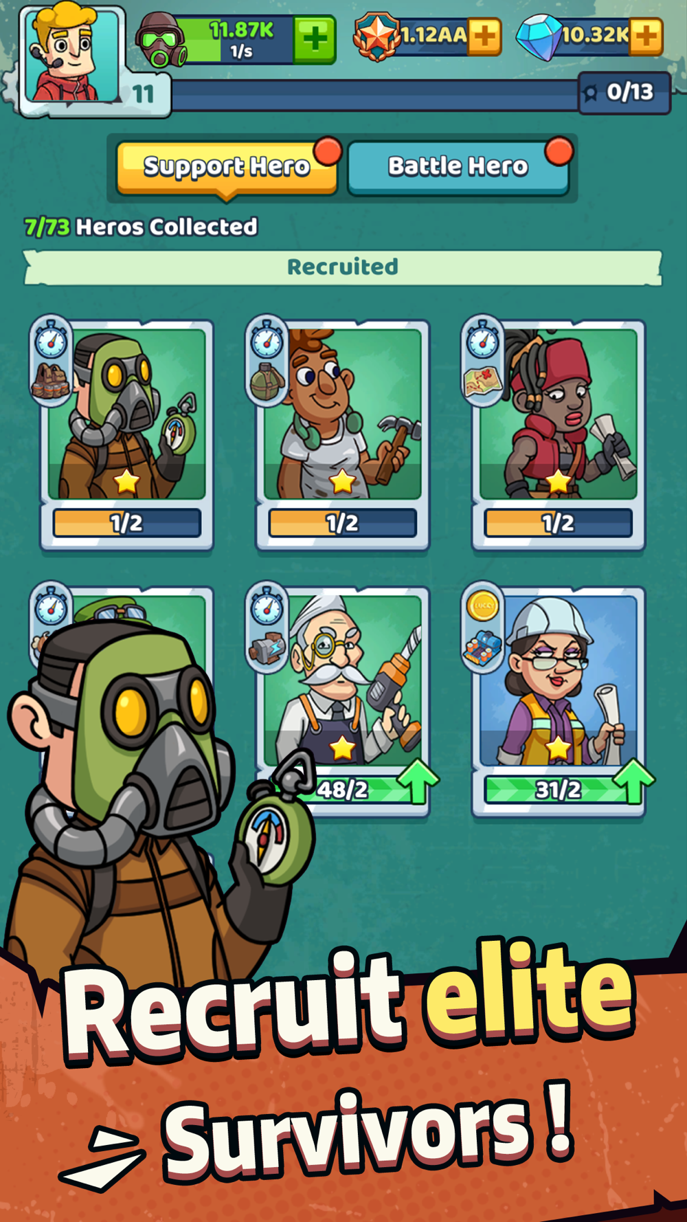 Welcome to " SurvivalAdventure:Idle Clicker", a post-apocalyptic world where as a leader, you need to establish a camp, recruit survivors, and find resources to sustain human civilization.