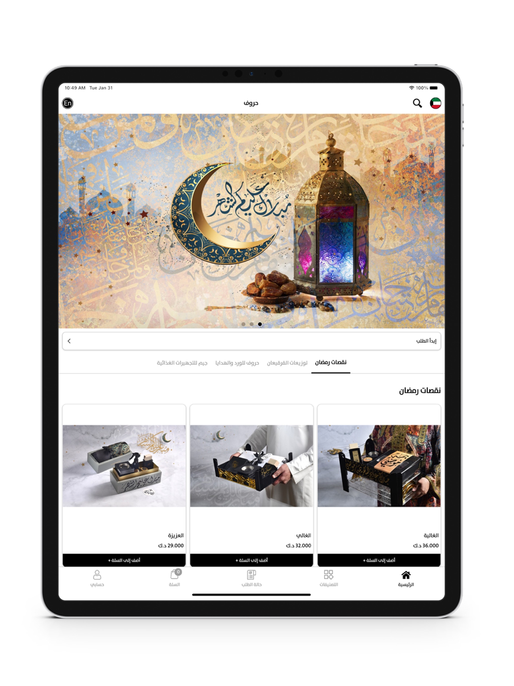Horof application is your best choice to get the most beautiful flower arrangements and perfumes for all your occasions. . To Order, please open the application and navigate your way to the category that suits your needs. Then start adding the products you want to your cart. The last steps are about adding the delivery location information, the payment method, and other contact information. By adding them your order will be delivered to you as soon as possible!