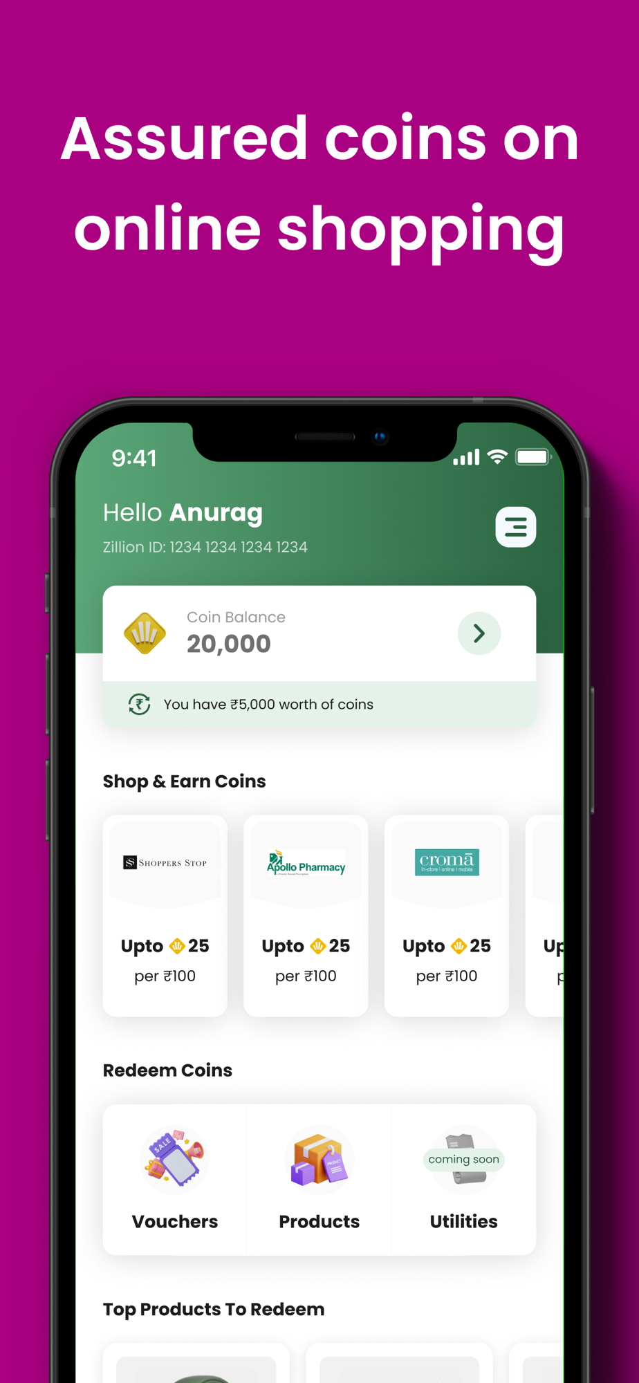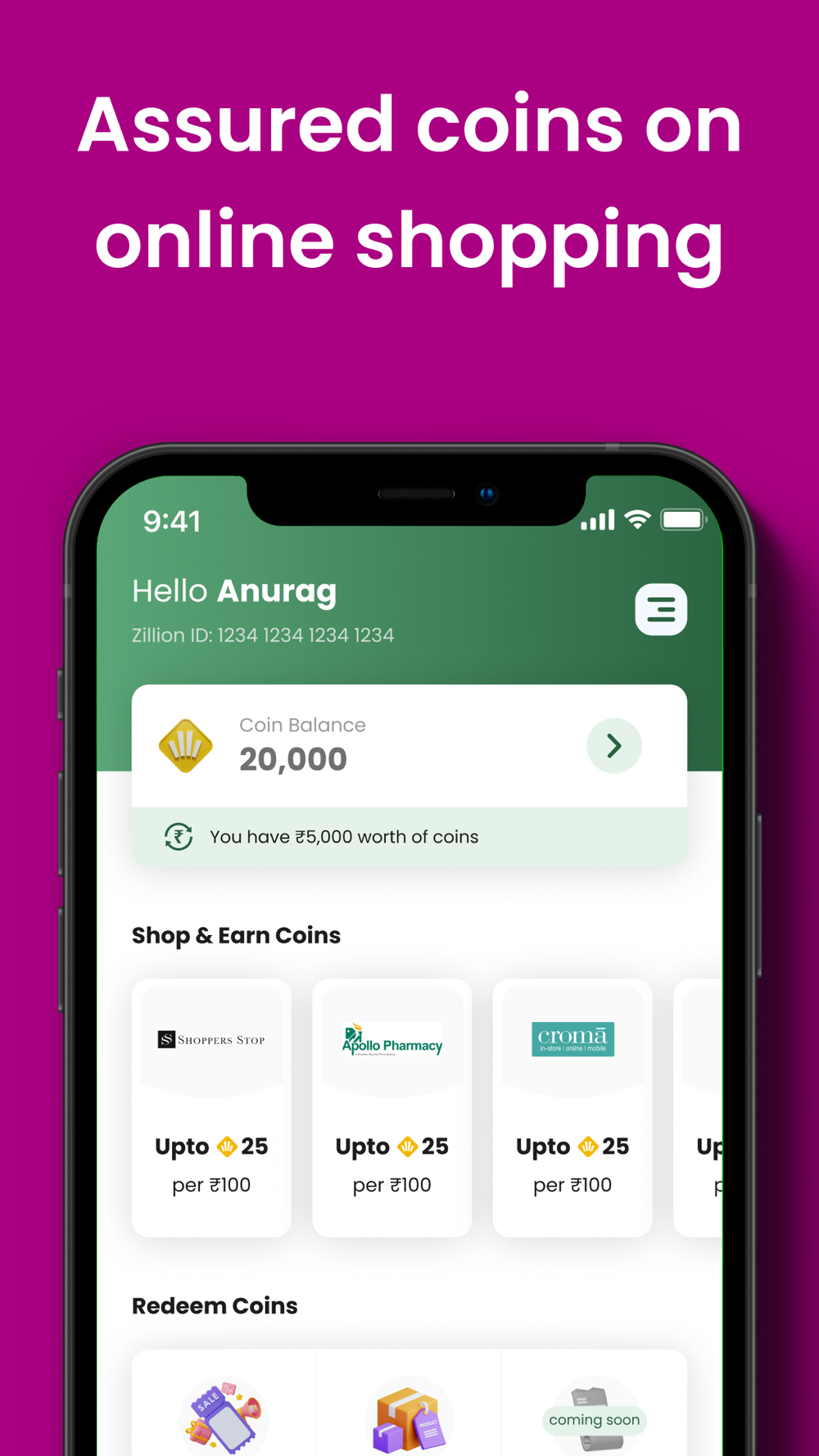 multiple categories and brands. With a wide range of offline and online partners, you earn Zillion