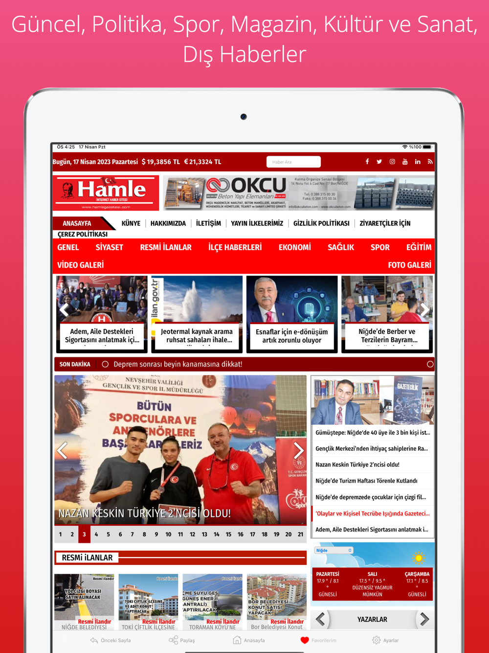 www.hamlegazetesi.com İnternet Haber Sitesi üzerinden Güncel, Politika, Spor, Magazin, Kültür ve Sanat, Dış Haberler, Ekonomi ve diğer tüm kategorilerde güncel haber hizmeti sunmaktadır.