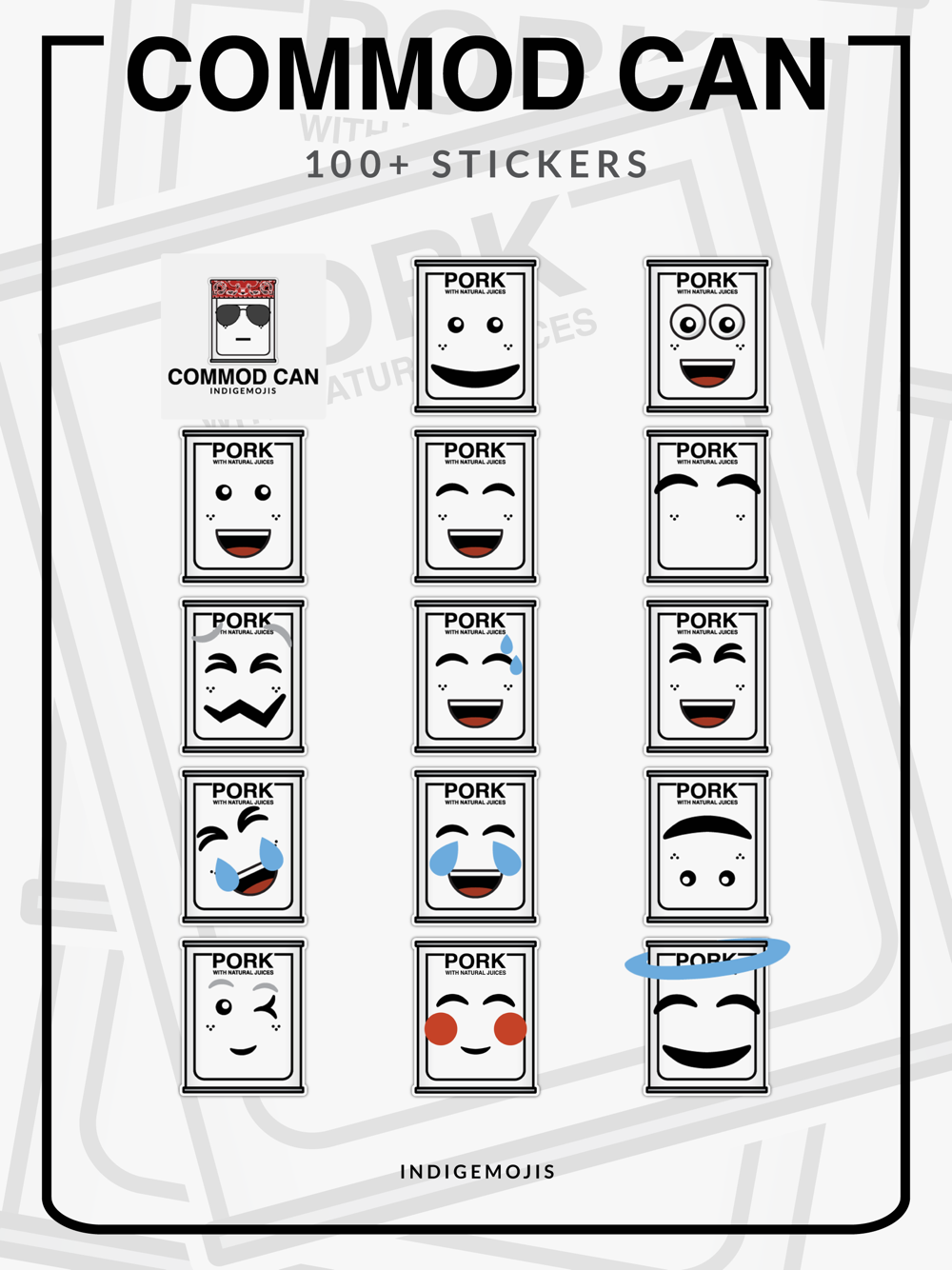 The Indigemojis Sticker App was launched in 2016 and Commod Can was in the initial launch. Commod Can has been released on its own with over 100+ expressions.