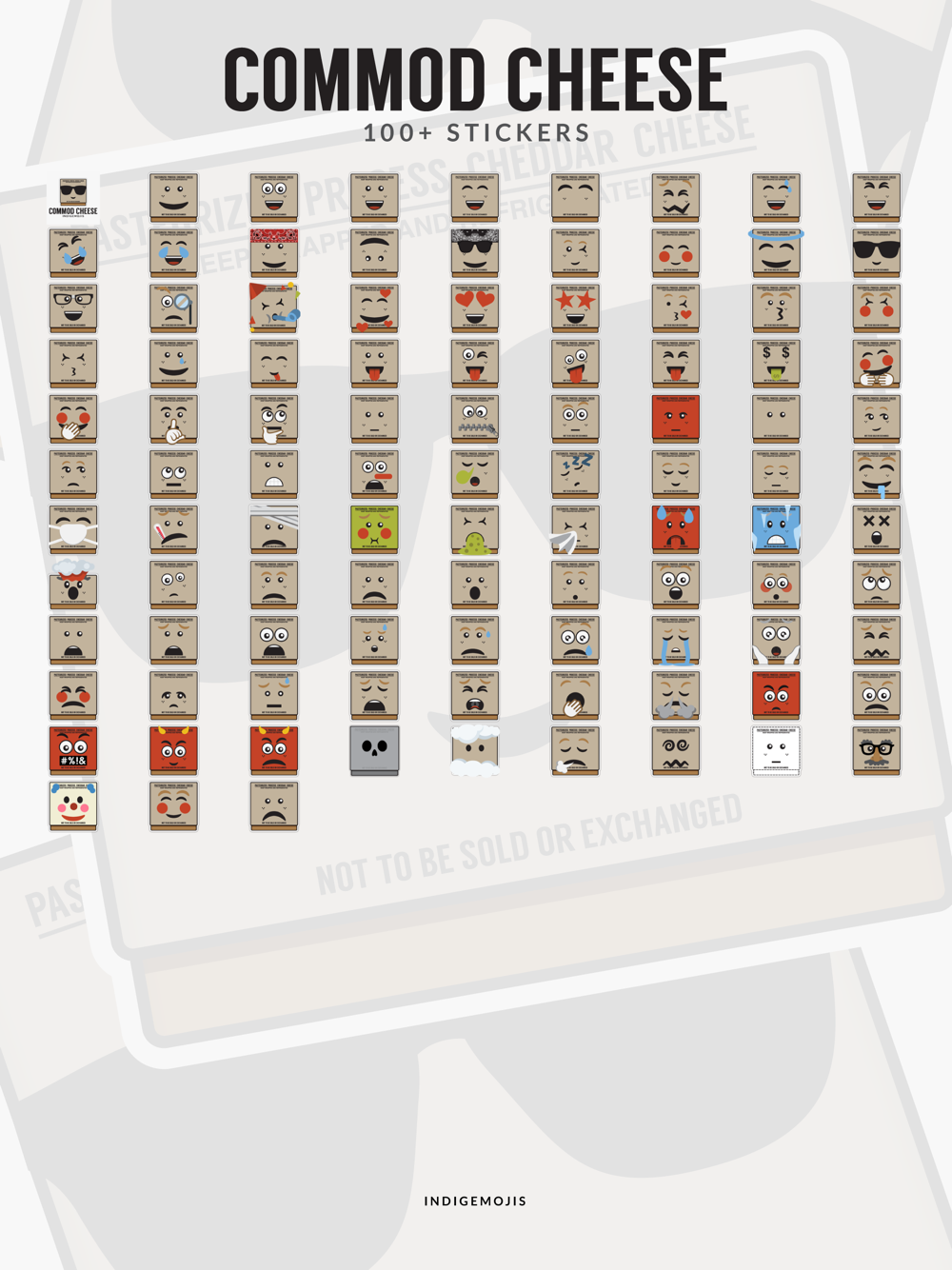 The Indigemojis Sticker App was launched in 2016 and Commod Cheese was planned to be released in the updated version of the app. Commod Cheese has been released on its own with over 100+ expressions.