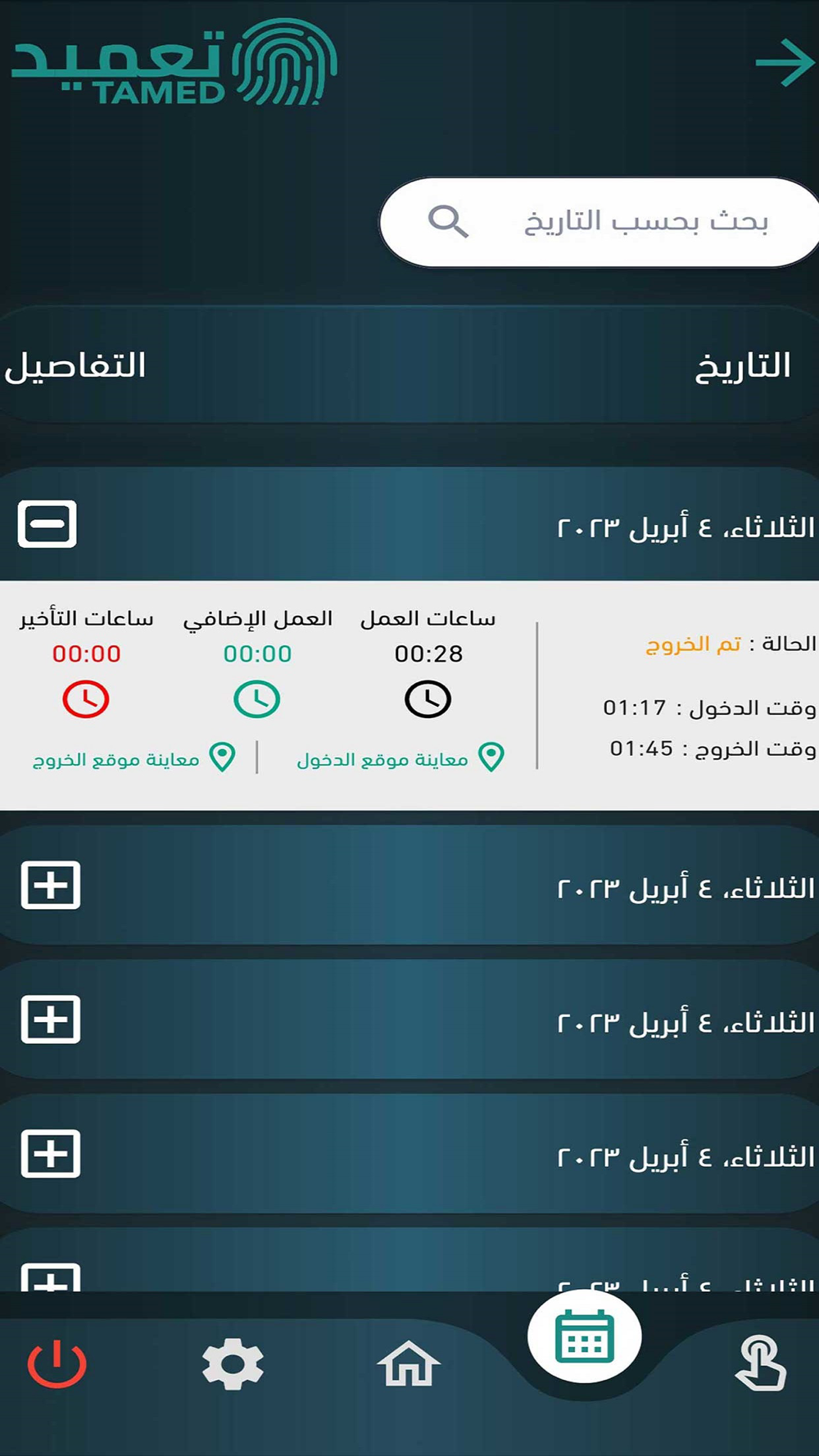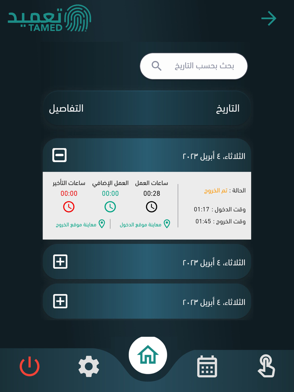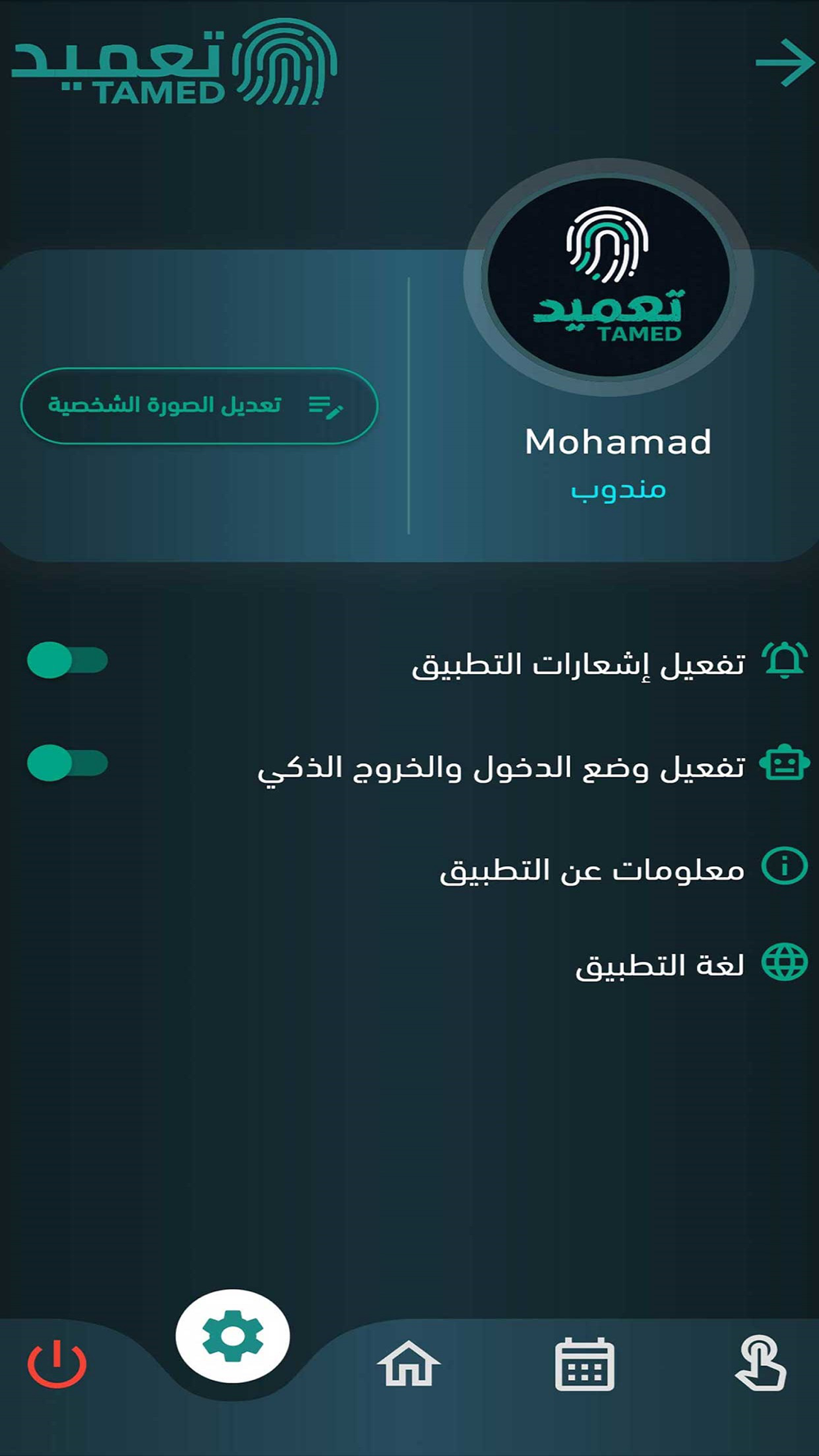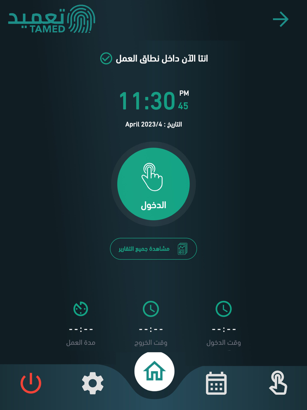 The fingerprint Tamed application is an application that allows employees of establishments registered with the Tamed system to record the employee's entry and exit times and follow up on attendance records