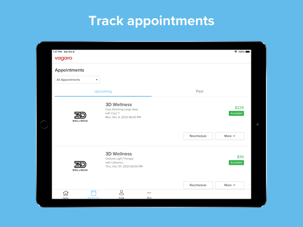 • Book cryotherapy, lymphatic compression, and light therapy with your favorite service provider
