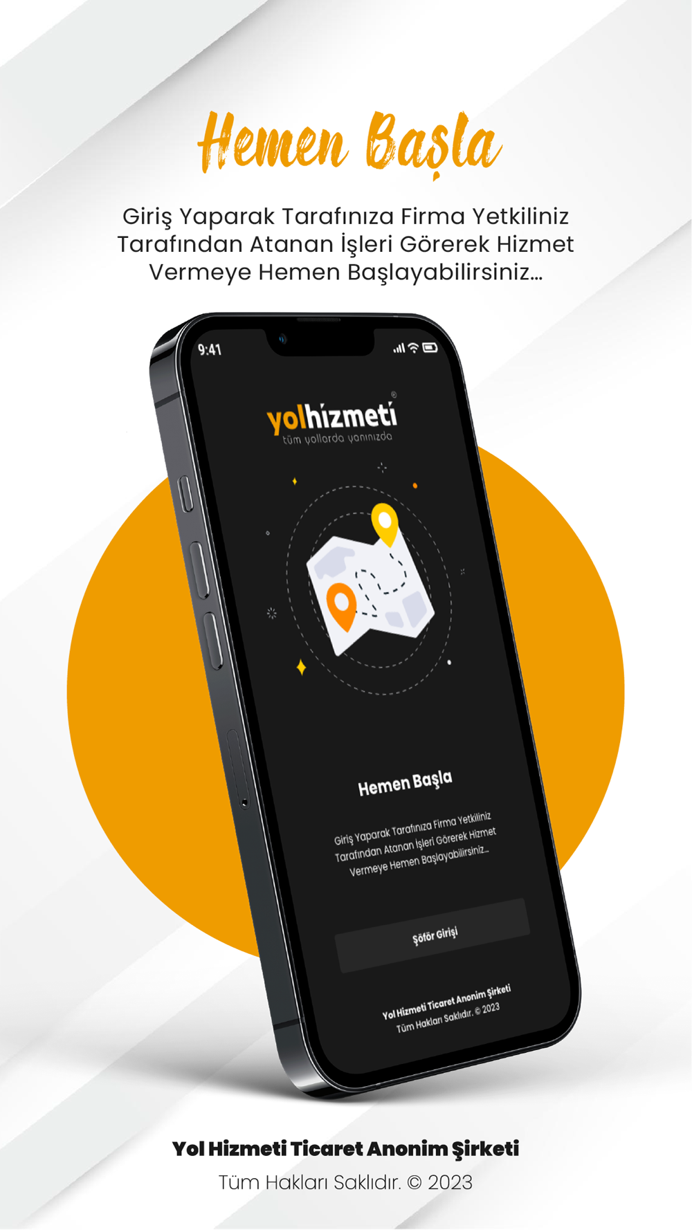 "YOL HİZMETİ" mobil uygulamasını telefonunuza indirin ve uygulamaya kayıt olun. Ardından ihtiyaç duyduğunuz her an Türkiye'nin dilediğiniz yerinde uygulama üzerinde almak istediğiniz yol yardım hizmetini seçin, konumunuzu belirleyin ve en yakın yol yardım ekibimiz en kısa sürede size ulaşsın.