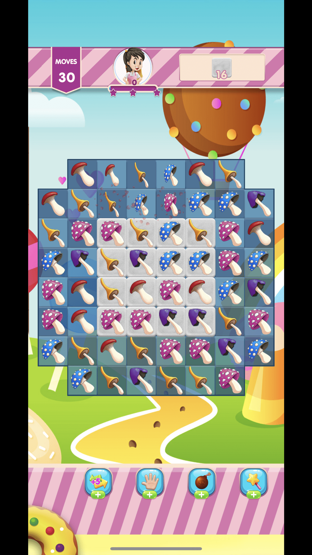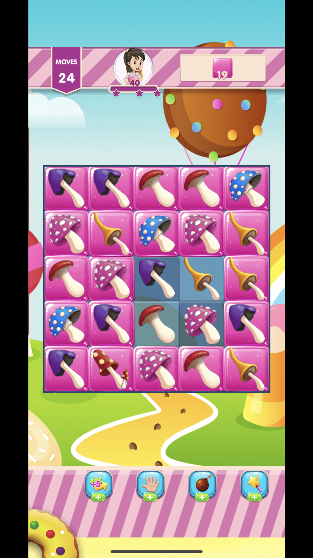 A fun way to play our games for free! Play match-3 game modes, target score, clear mushrooms and collect ingredients.