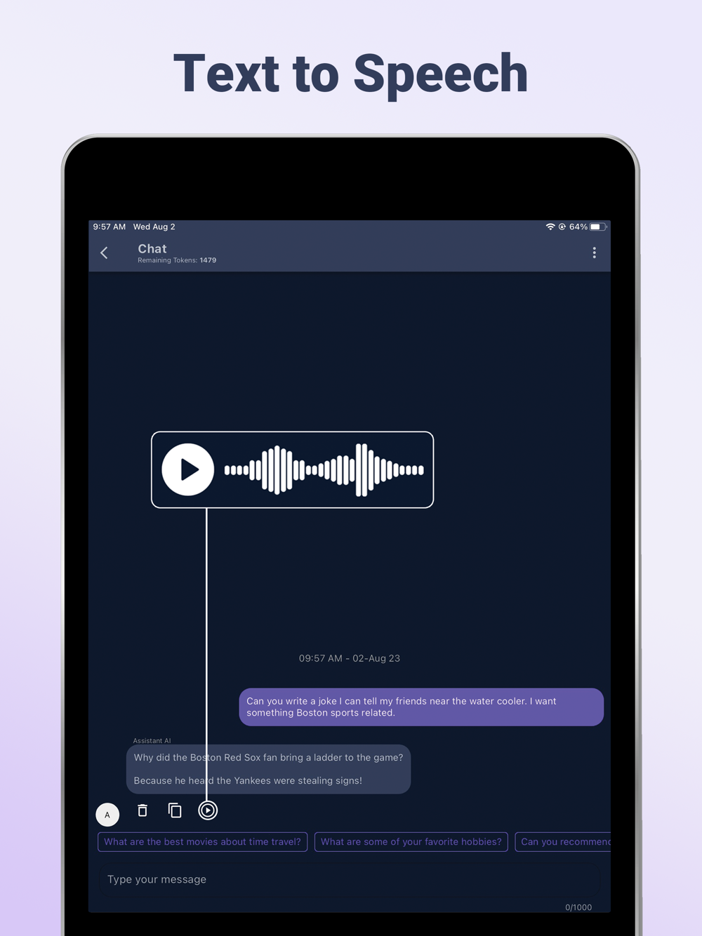 - The AI chat app also features Voice API, so the AI can read the messages to you.