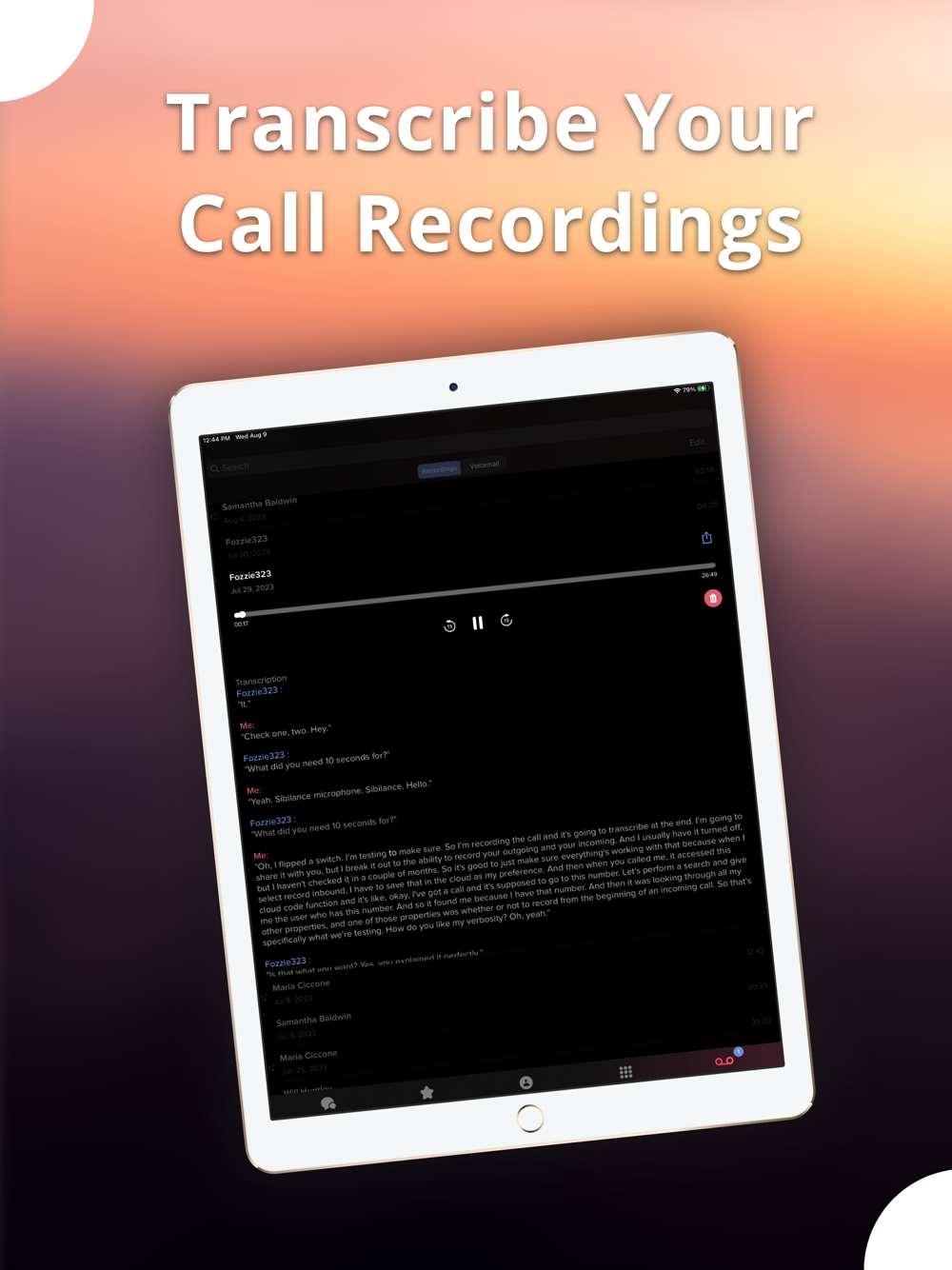 Never miss a word – Burner Phone transcribes your recorded calls for easy review. Access vital insights from your conversations with clarity and accuracy. Playback is synchronized on screen, highlighting each spoken word as it's played back. Hold down on any word to skip to that moment in the recording. With transcriptions, you can now search your conversations by keyword. It's real and it's fantastic.