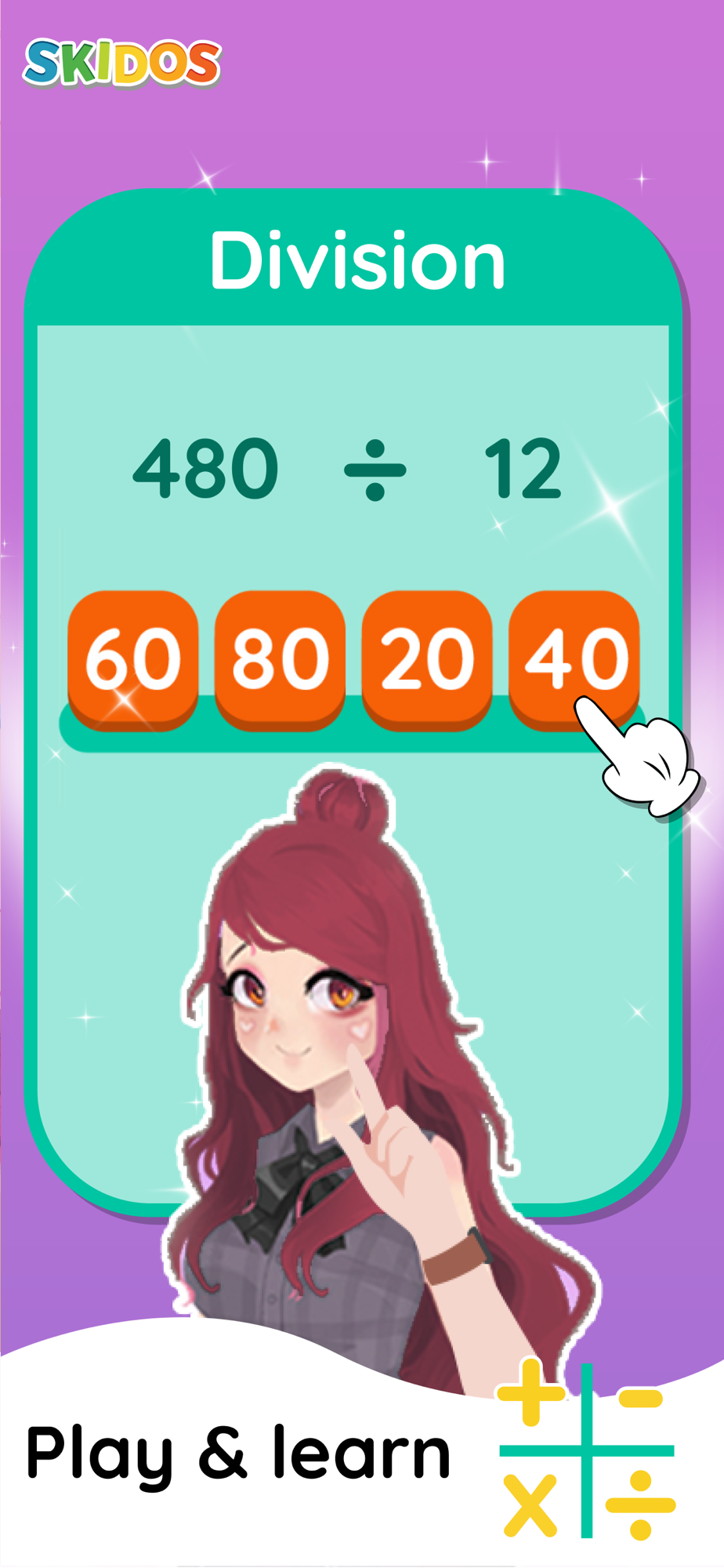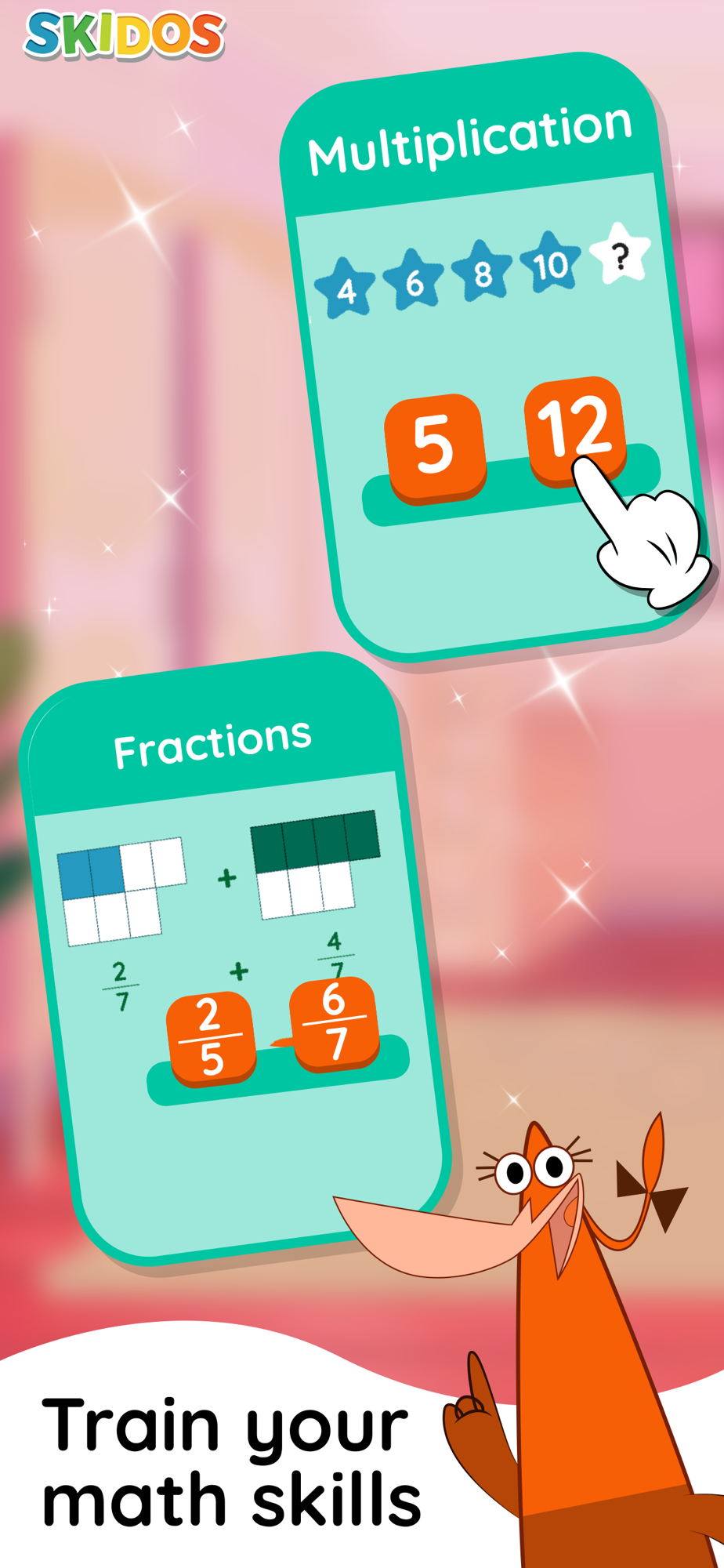 MATH: Our math exercises cover a comprehensive list of topics including number sense, addition, subtraction, multiplication, division, geometry, etc. Tasks evolve as a child progresses. Interactive design and animation support learning - three cute little SKIDOS mascots help and encourage kids when they work on the assignments.