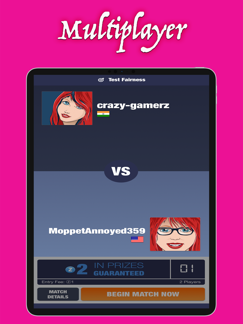 Play for Fun! Compete against other players to win cash (where available) or virtual currency! Test your skills against people from around the world to win big.