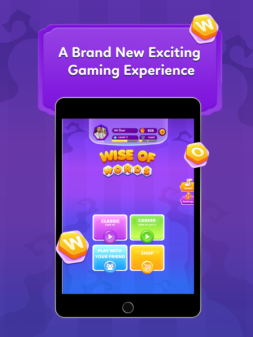 Download Wise Of Words now, start improving your language skills and experience the excitement of competing with players around the world! Share your achievements with your friends and climb to the top to become the best player!
