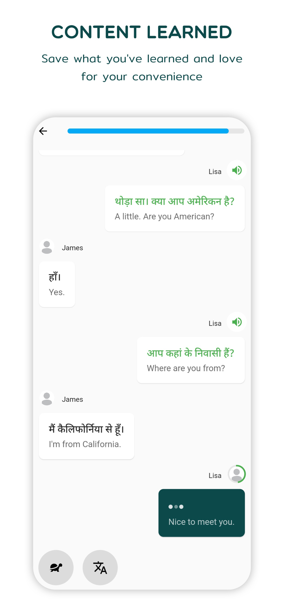 With Hindi Speak & Listen, you have access to a vast collection of familiar Hindi phrases, featuring over 9999 sentences and phrases covering various categories and relevant topics. Our app provides an easy and effective method for you to become a native Hindi speaker. Simply listen and repeat, and then record your speech to compare it with the app's native Hindi speakers. Repeat this process over and over again while tracking your progress with our supported tools, and you'll see the difference in just a few days.
