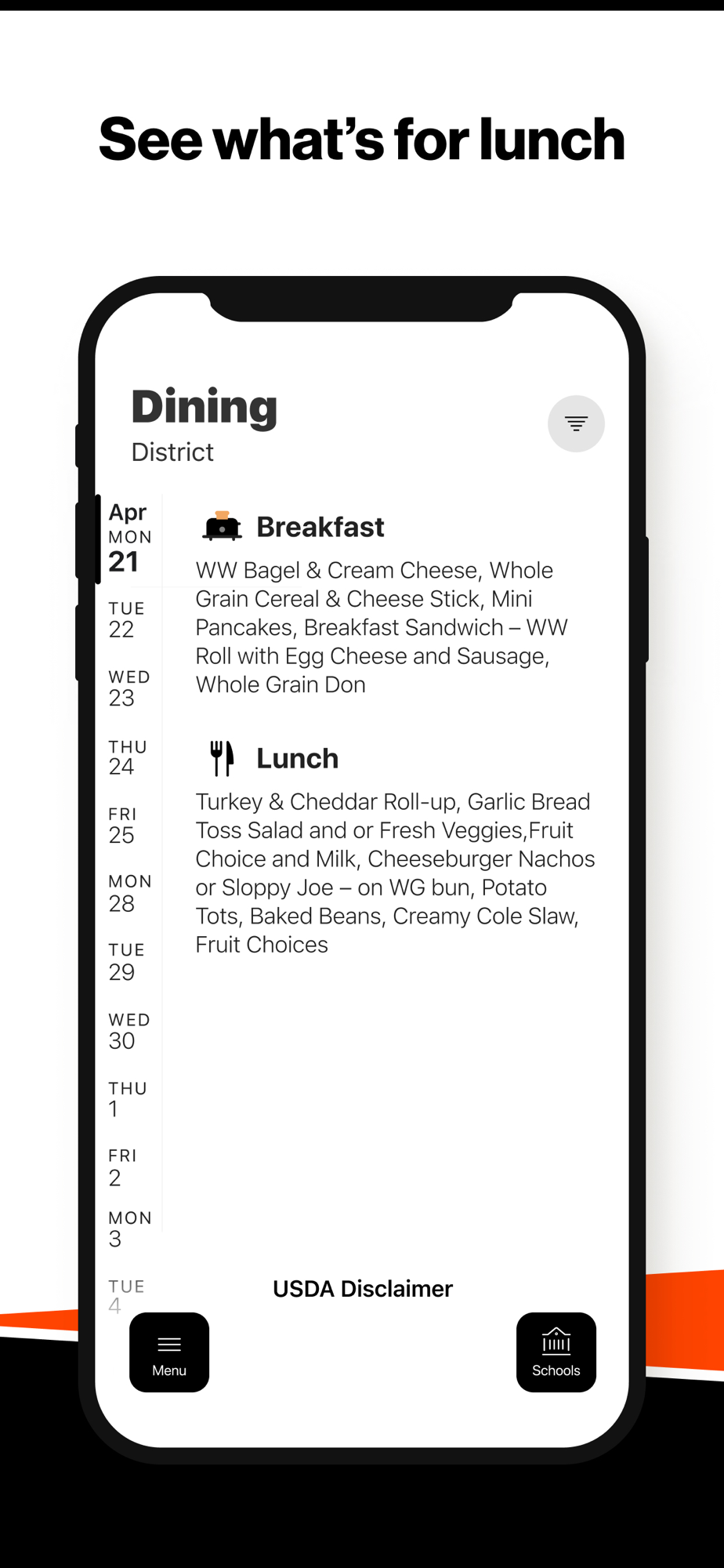 Within the dining section, you’ll find an easy to navigate, weekly menu, sorted by day and meal type.