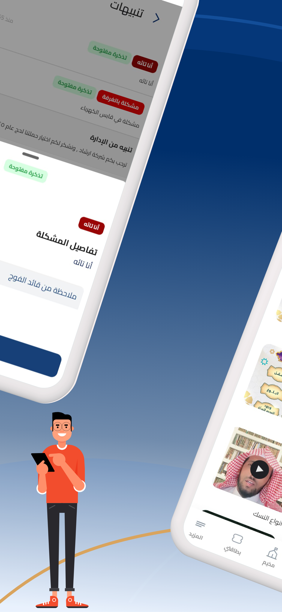 - يتيح التطبيق للحاج التواصل مع المشرف الخاص به عند وجود اي مشكلة، مع التواصل ايضا مع مفتي الحملة.
