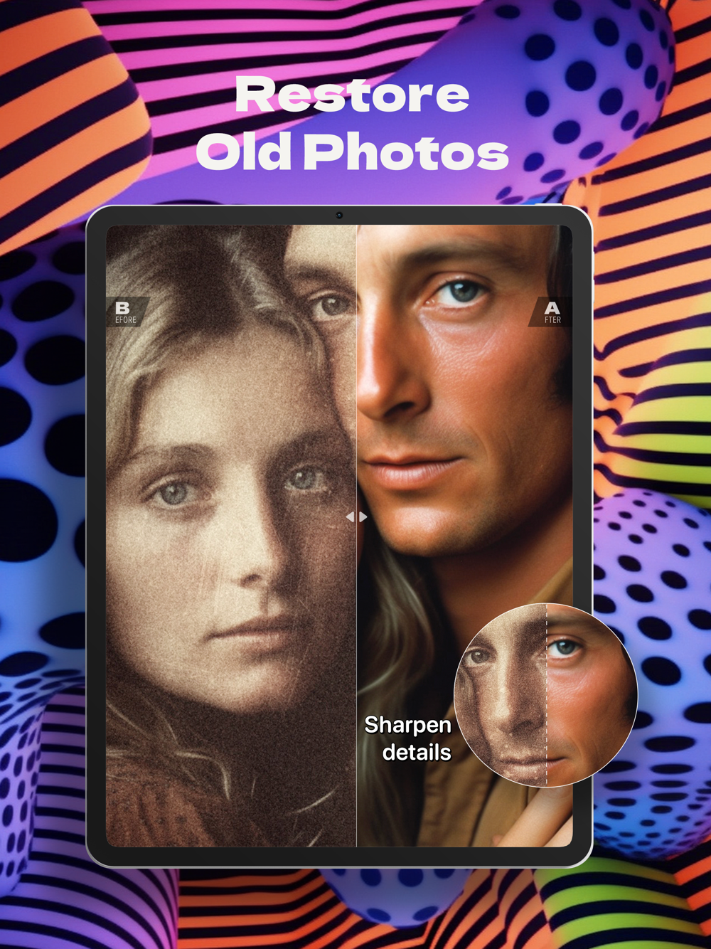 Picsup is a powerful AI photo enhancer app that instantly transforms your old, blurry, pixelated or damaged photos into crystal clear HD images with just one tap! With advanced repair and denoising capabilities, Picsup can restore your old and damaged photos to their former glory in just a few taps. Our powerful sharpening tool is specifically designed for portraits, highlighting fine details and making them look crisp and clear.