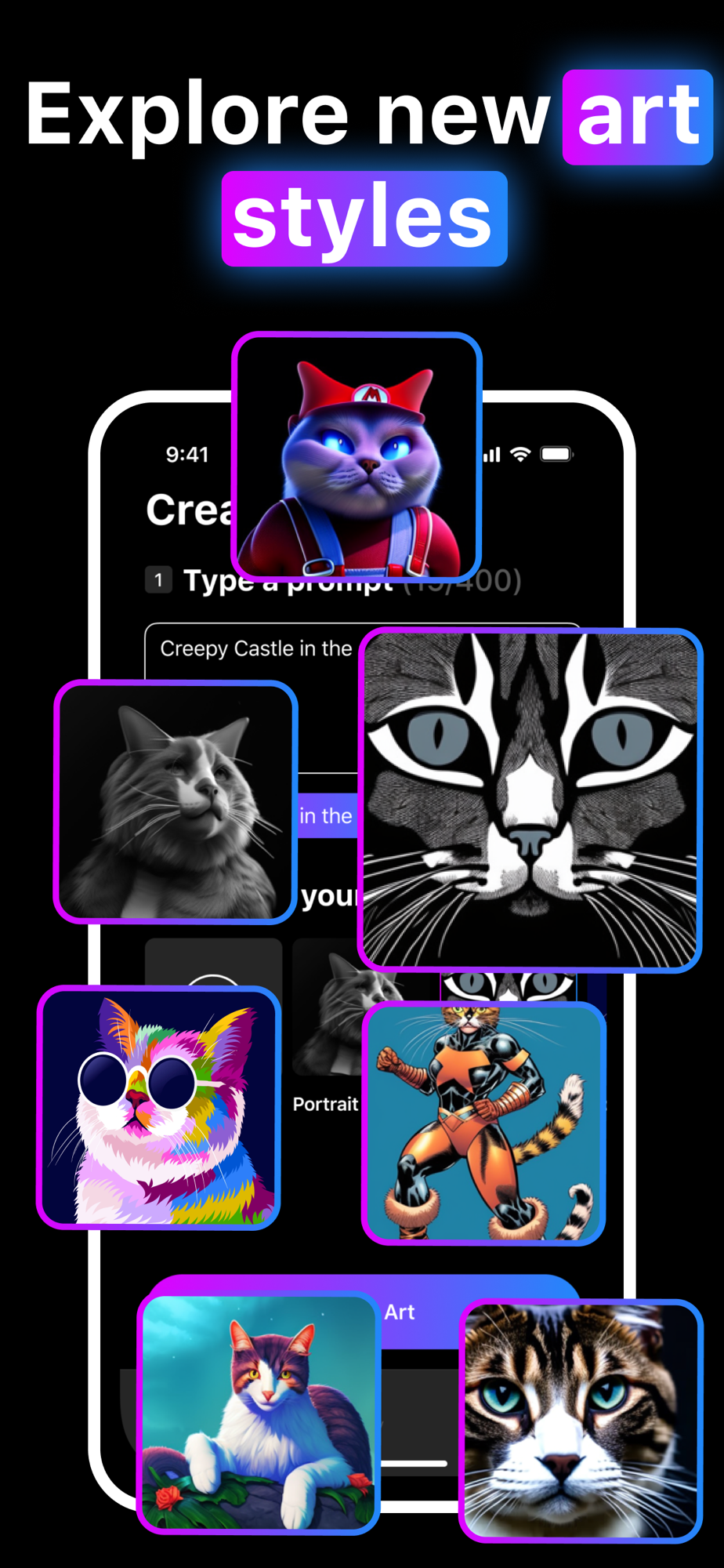 Choose from a wide variety of art styles that are AI-powered, including Neon, Fantasy, Pop Art, and so on.