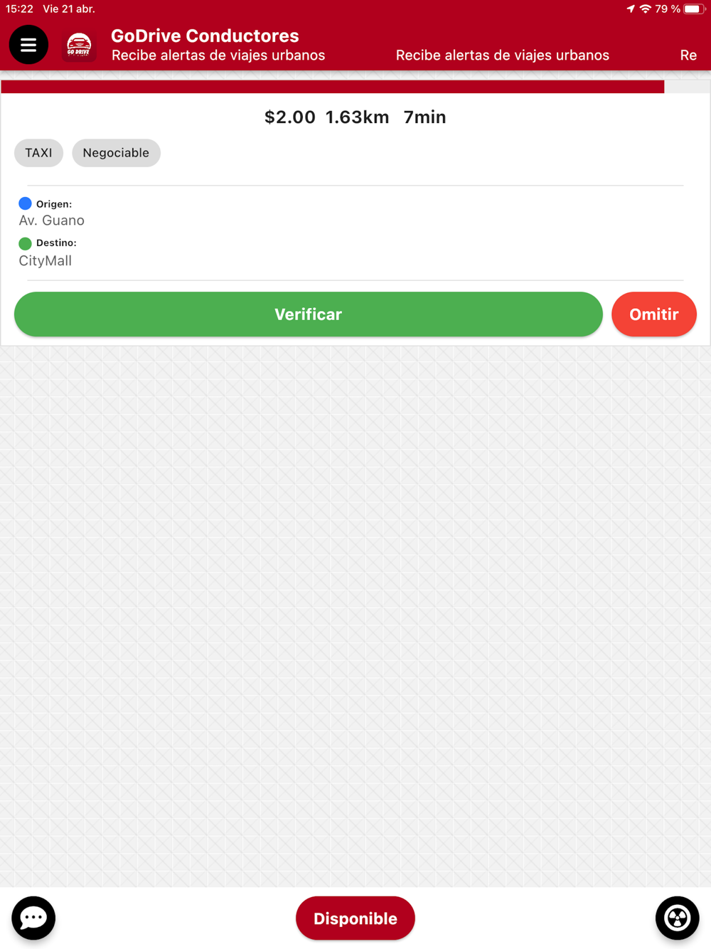 Si tienes un automóvil, nuestra app de servicios de transporte te brinda una gran oportunidad para ganar dinero extra. GO Drive te permite ver la ubicación del pasajero y la tarifa antes de aceptar la solicitud y viajar. Si el precio del pasajero parece suficiente, la app permite a los conductores ofrecer su propia tarifa u omitir los viajes que no les gustan sin penalizaciones. Lo mejor de esta app viajes alternativos es su unico bajo pago por servicio, lo que significa que conducir con GO Drive es más conveniente.