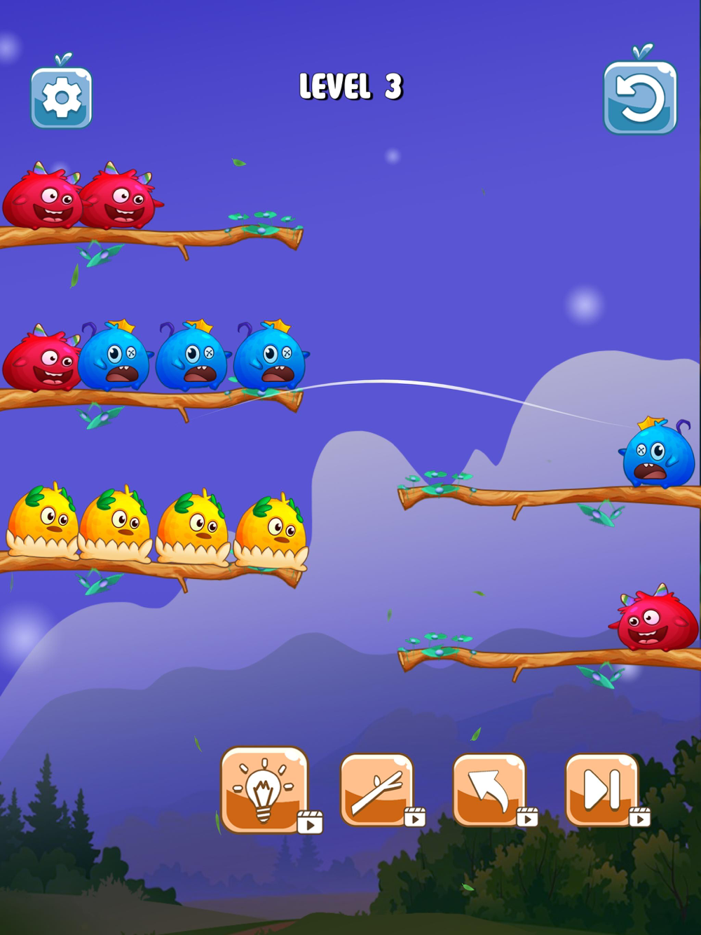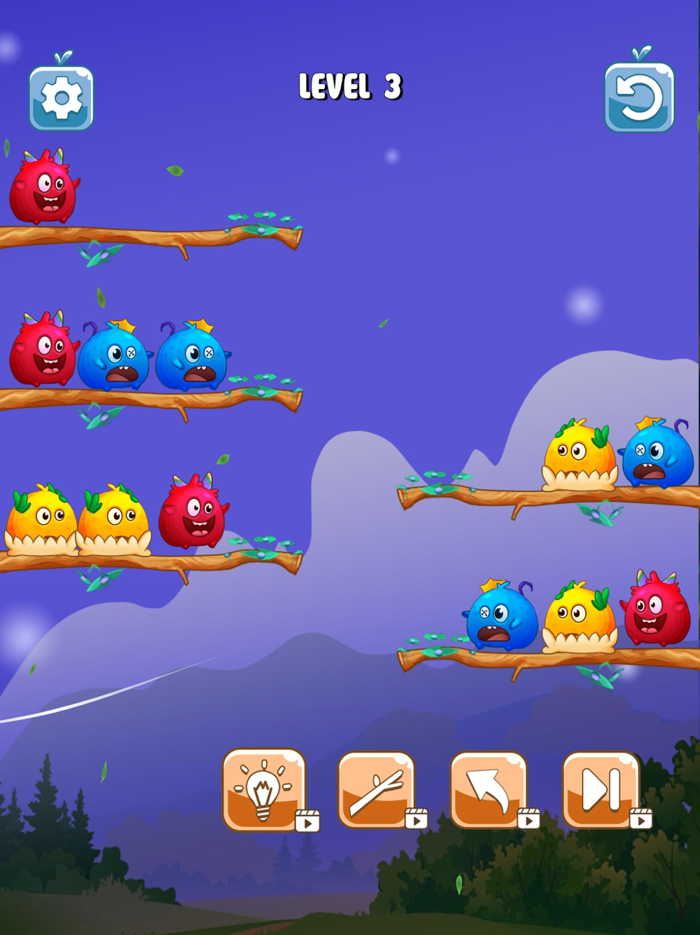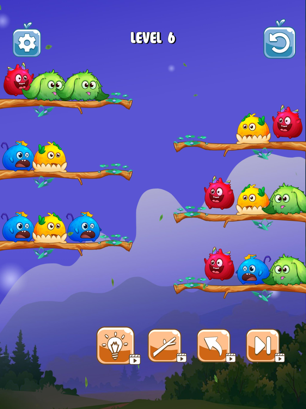 Monster Color Sort is a fun and addictive puzzle game! Try to sort the colored monster in the tree until all colors in the same color. A challenging yet relaxing game to exercise your brain!