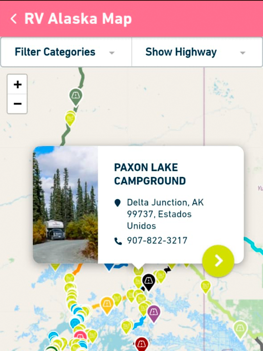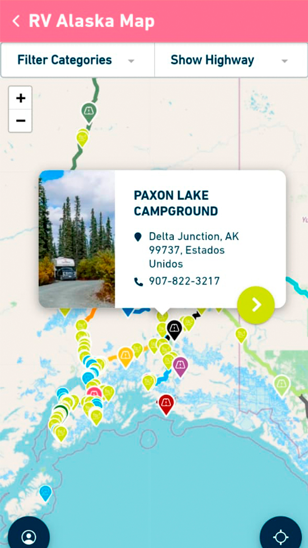 Never miss a moment with our geolocation feature! RV Alaska will notify you when you're approaching a landmark, RV park, or dump station, so you can make the most of your journey.