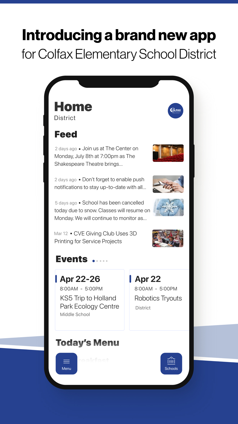 Introducing the brand new app for Colfax Elementary School District.