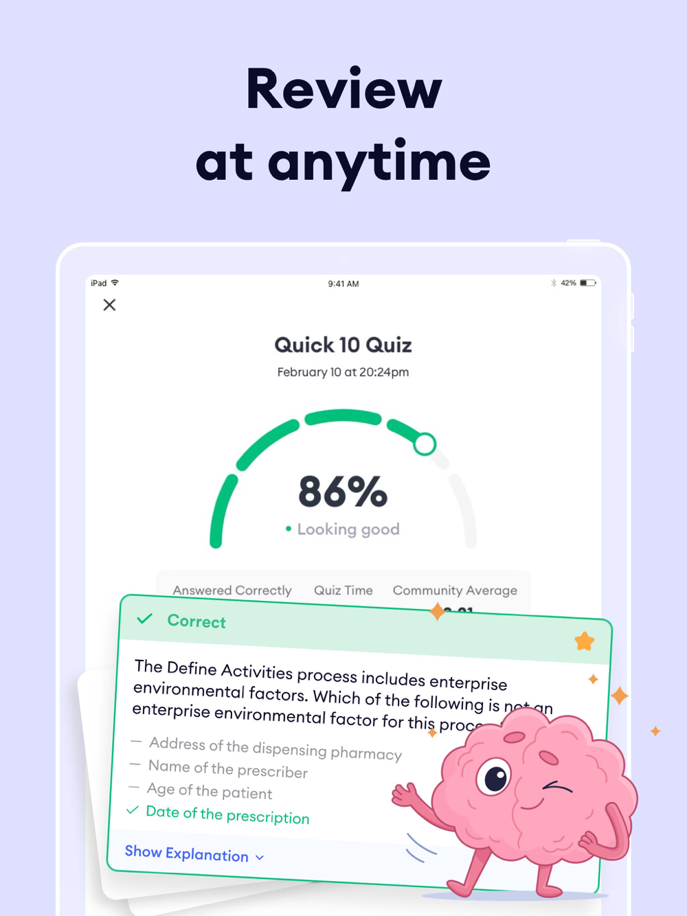* More than 1000 high-quality questions with answer explanations;