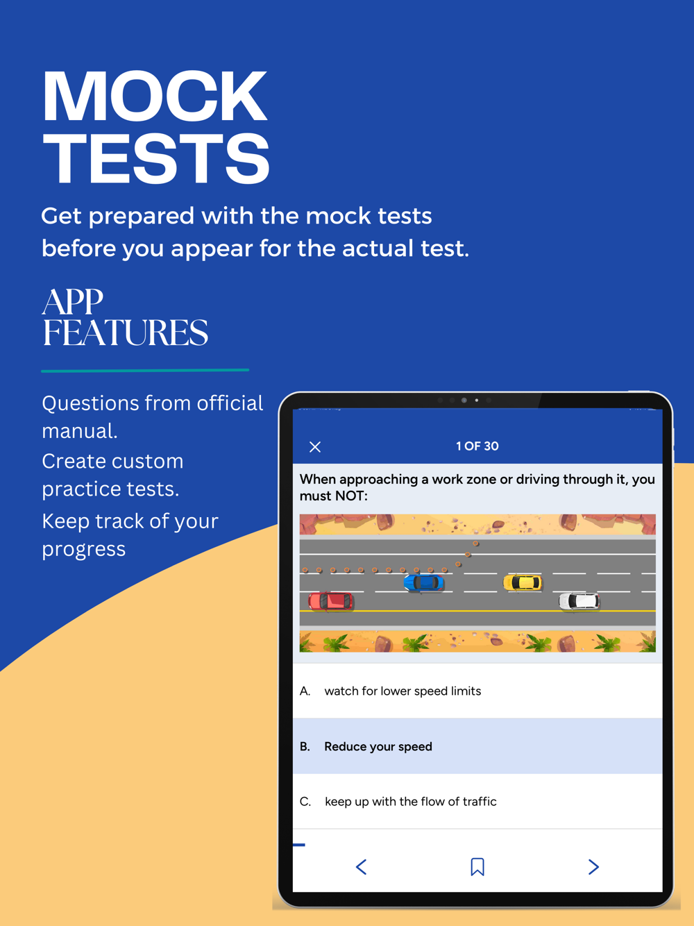 Followings are the features of Utah DMV Permit Practice Test app.