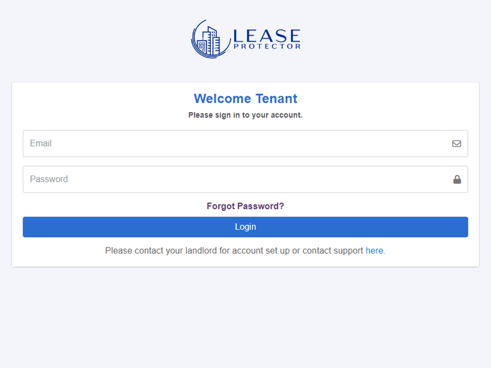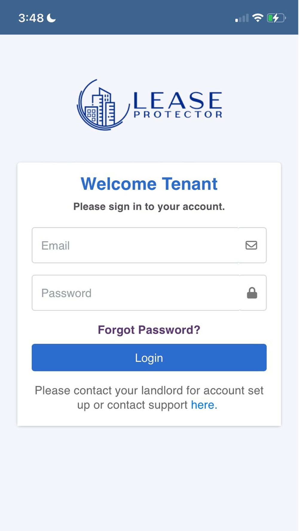 Welcome to the Lease Protector tenant app! If you are a landlord, download the "Lease Protector Landlord" app.