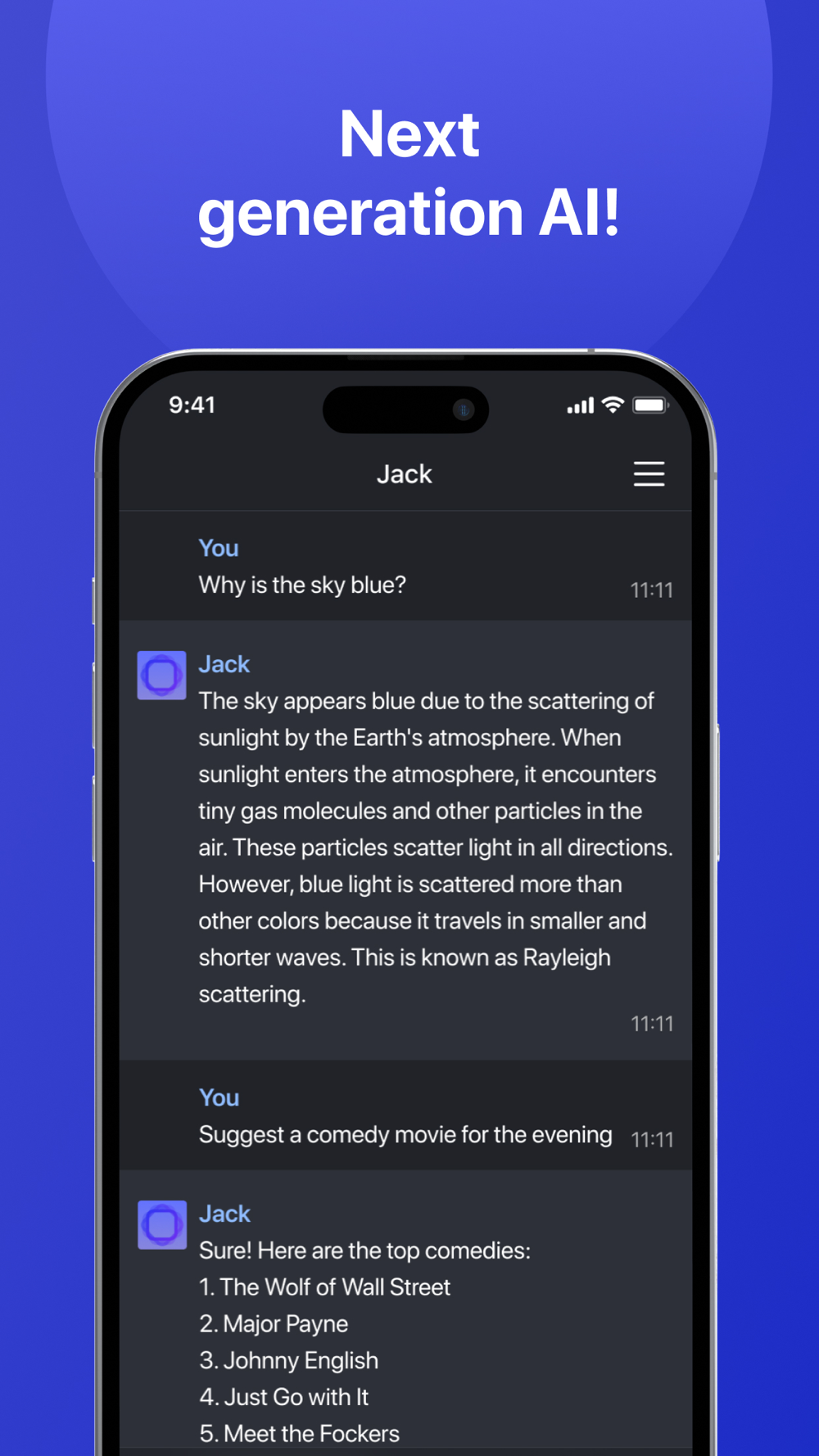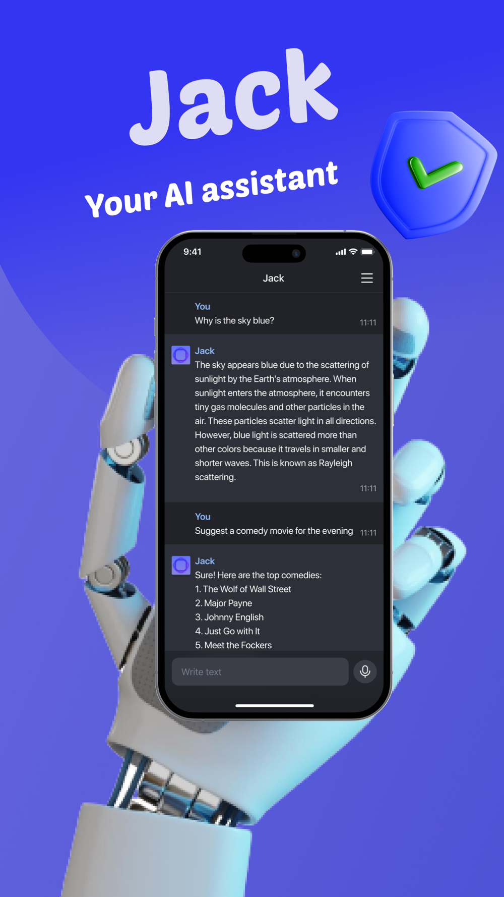Jack chatbot helps you quickly get answers to any questions and tackle various tasks in everyday life, education, and business on the go. Jack ChatBot is an innovative solution for those seeking simple and reliable access to cutting-edge technologies based on artificial intelligence. Download the app today and start chatting with Jack ChatBot right now!