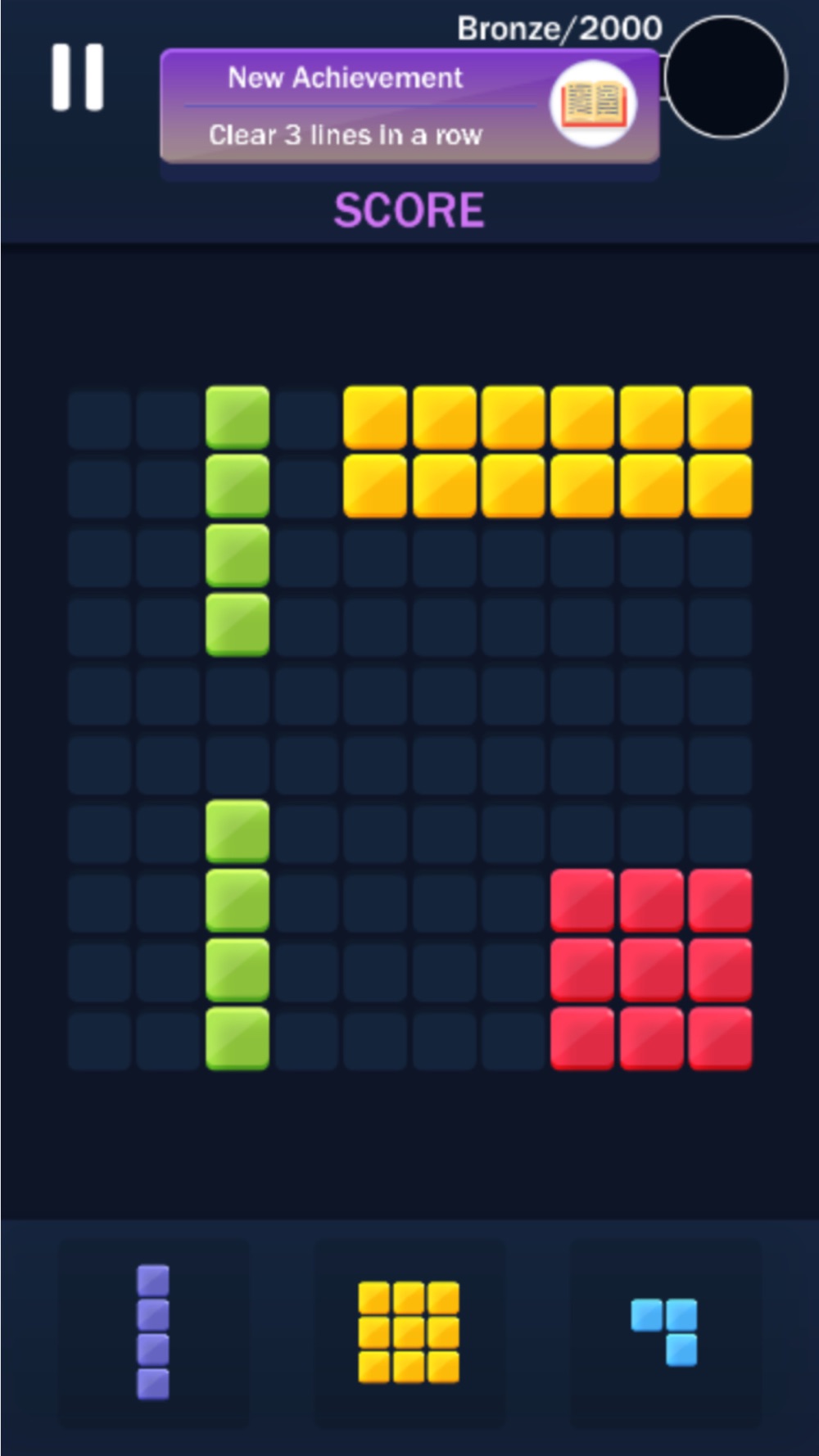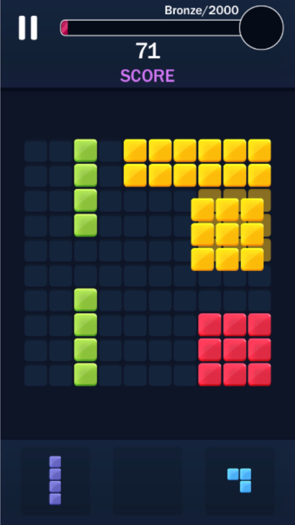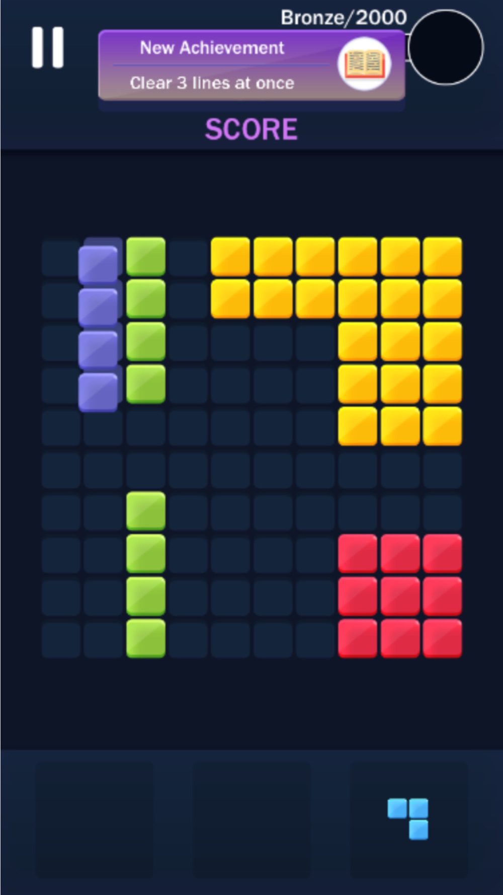 Delete multiple rows or columns at the same time or in a row to earn bonus points. The game will be over when there is no more space left to place a block. Get the highest score possible, try to unlock medals and achievements, and beat your high- scores.