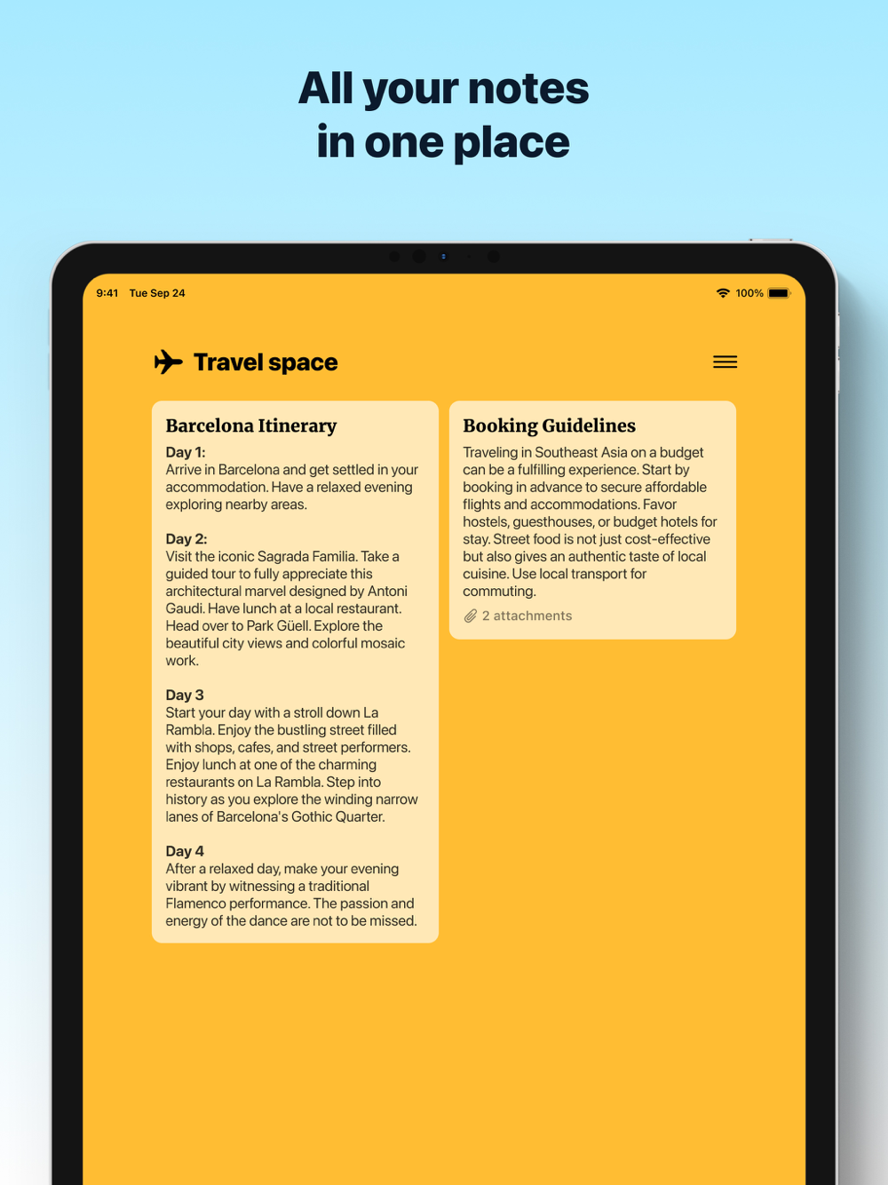 Solid Notes is here to help you capture and organise all your ideas. You can create color coded spaces for all the things that matter in your life and you can make staying on top of your notes and thoughts easy.