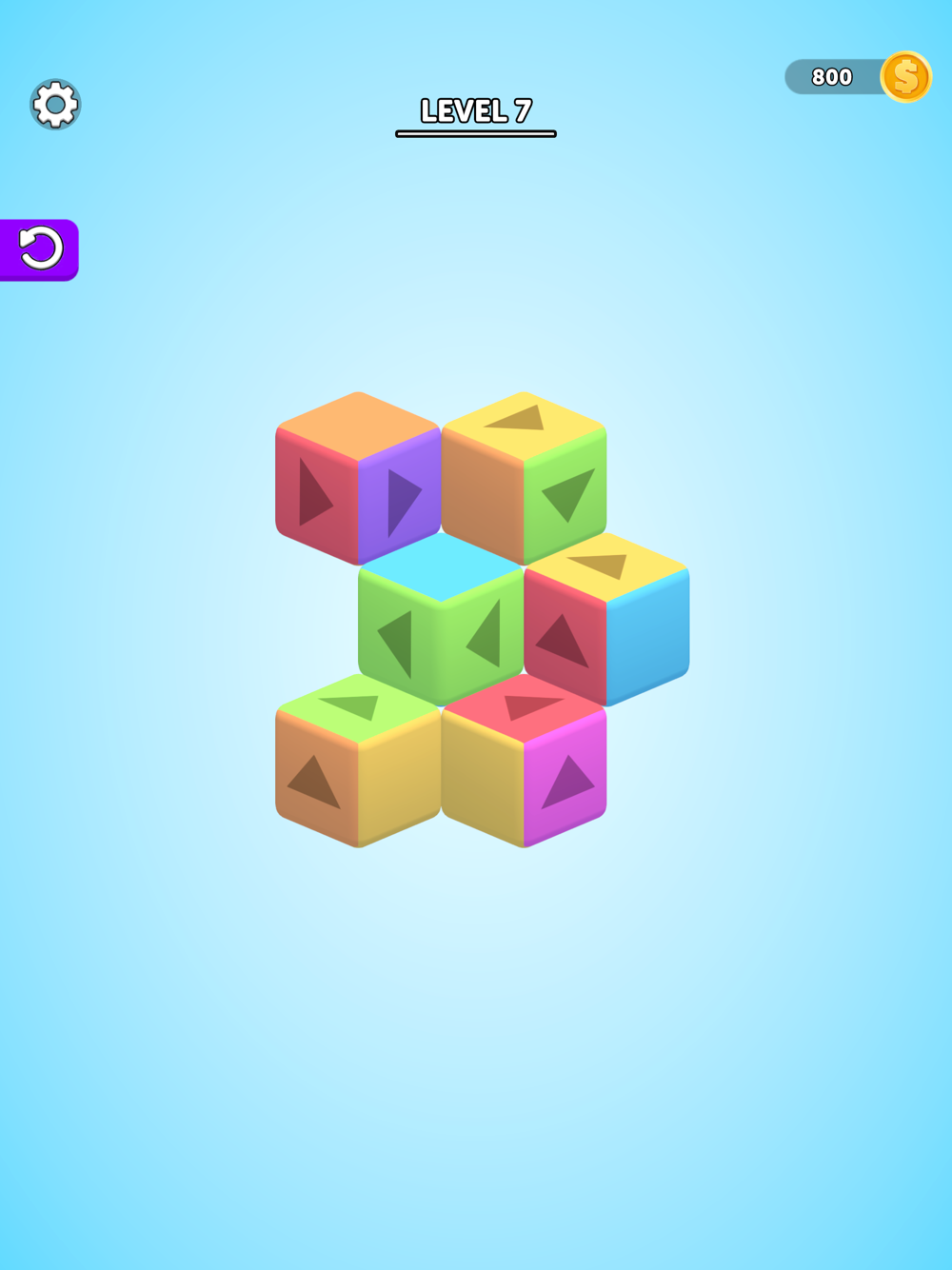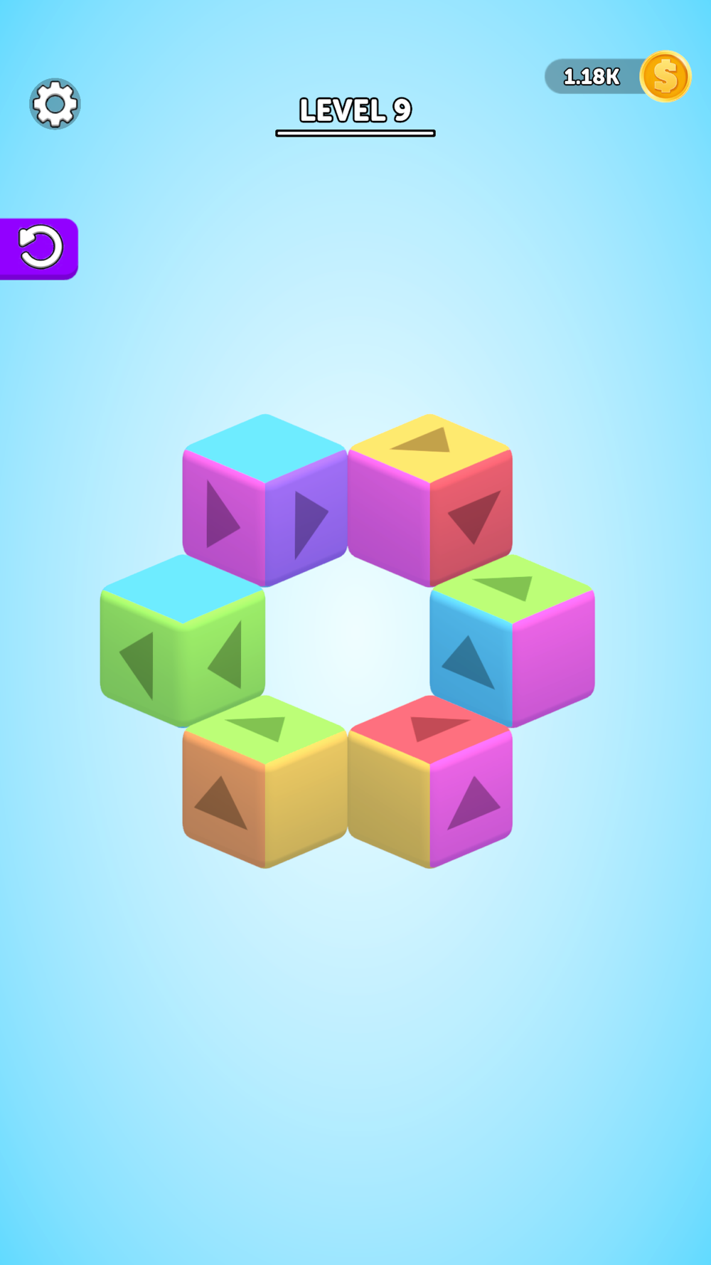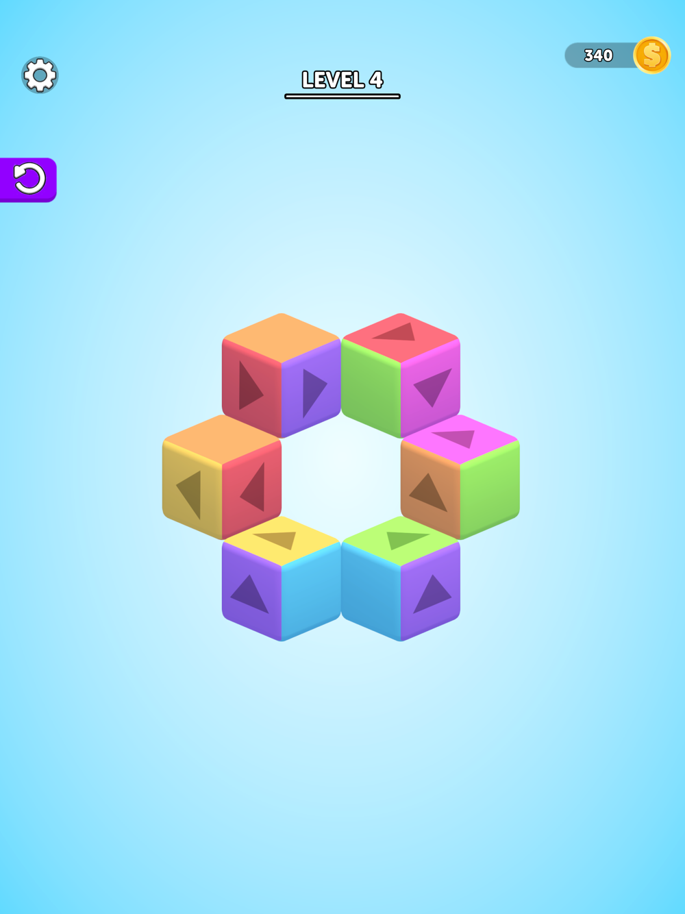 Tap on the cubes to rotate in their direction and match all cubes with the same colours!