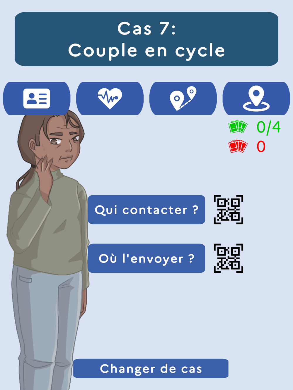Destiné aux travailleurs sociaux de la région Auvergnes Rhône-Alpes, un système de quiz intégré naturellement dans chaque cas scénarisé permet aux joueurs de compléter leurs connaissances quant aux différents services existants de la Région.