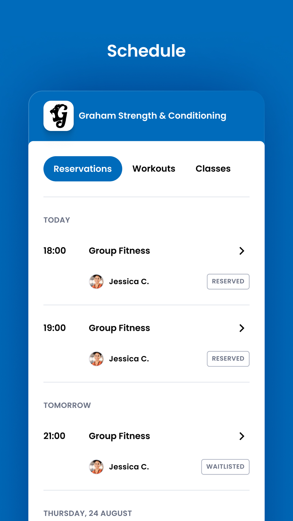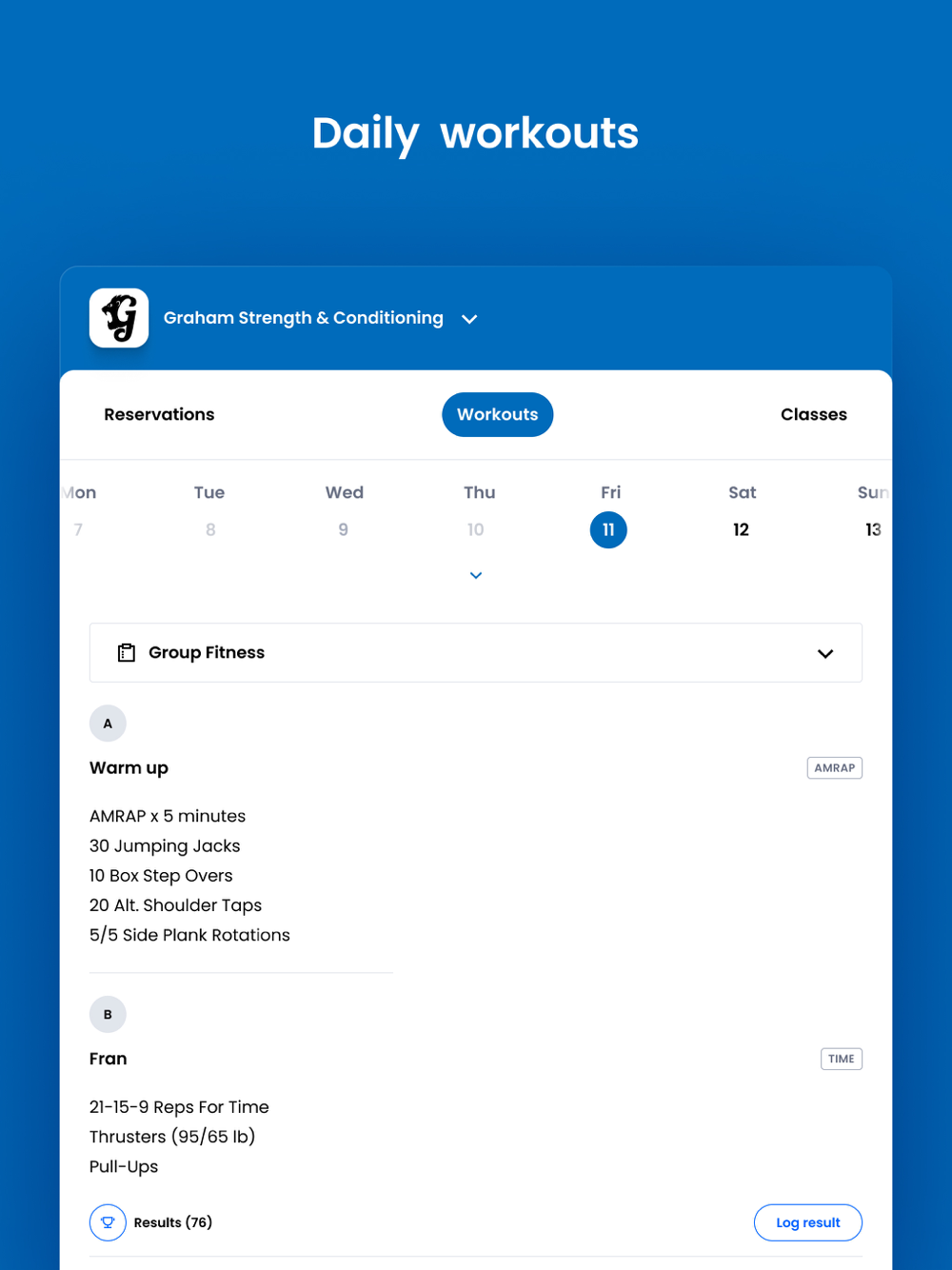 For members of Graham Strength and Conditioning to reserve their place in a class, sign up for gym events, and general account management like updating headshots and credit card on file.