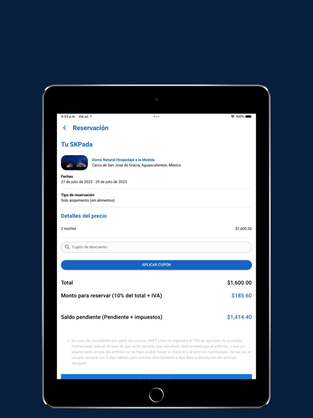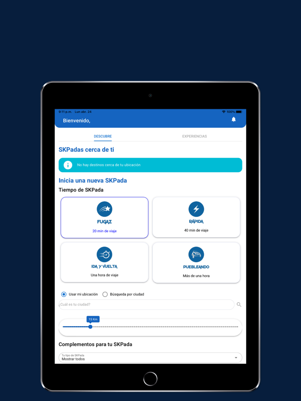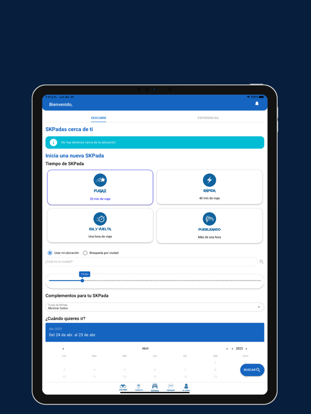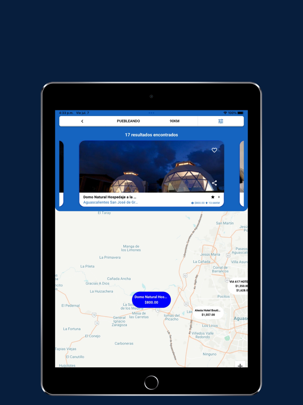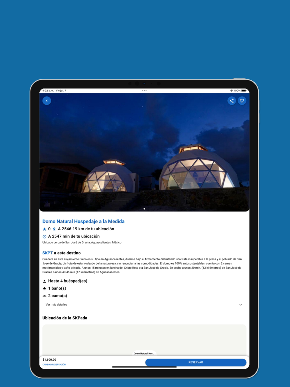 Somos una empresa de servicios turísticos alternativos, tales como: campings, glampings, casas de campo, cabañas, hoteles boutique, spa, temazcales, entre otros. A través de una plataforma web y la aplicación móvil (APP), creamos experiencias únicas de locaciones y servicios turísticos totalmente gratis para el usuario.