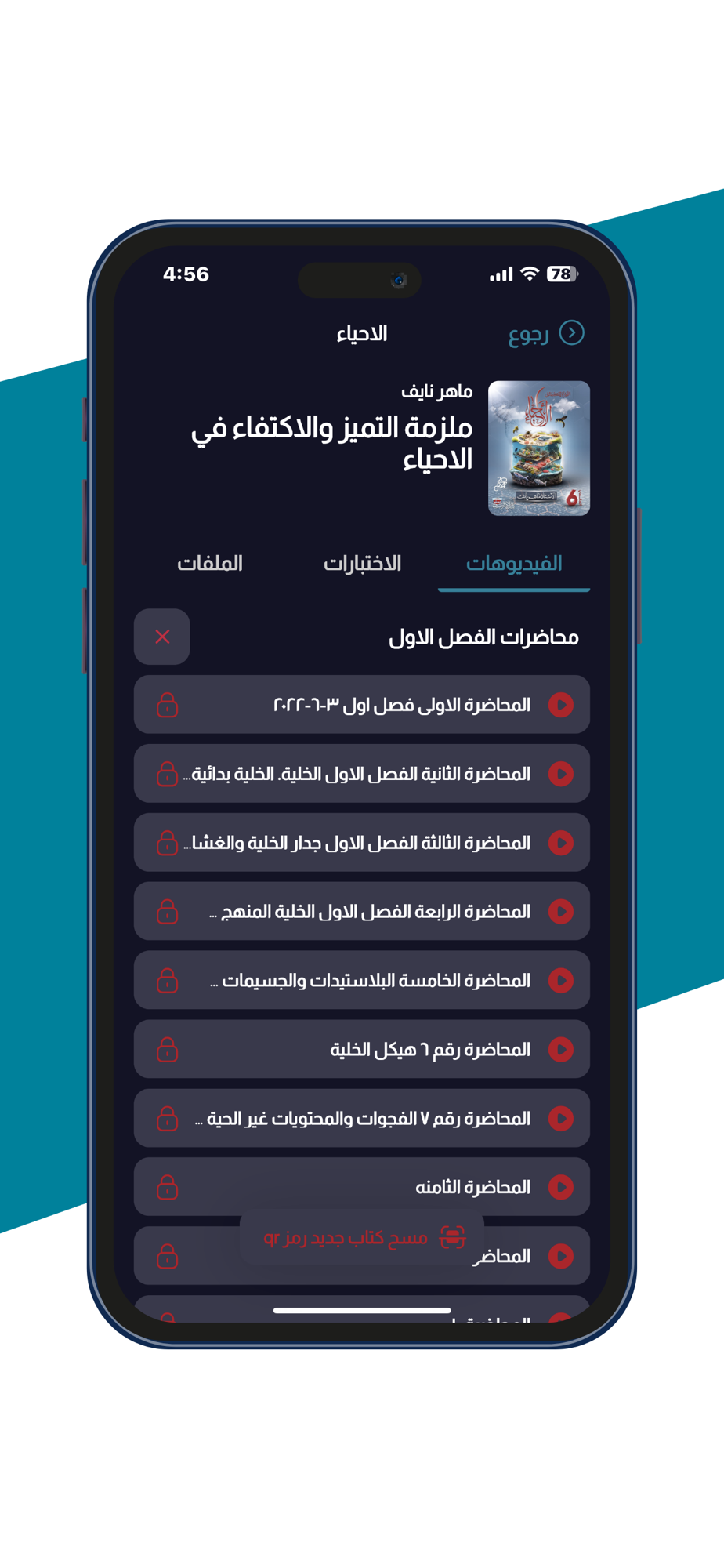 • سهولة التعامل مع التطبيق والوصول إلى الكورسات ومشاهدة المحاضرات من خلال مسح الكود (QR) الموجود على غلاف الملزمة.