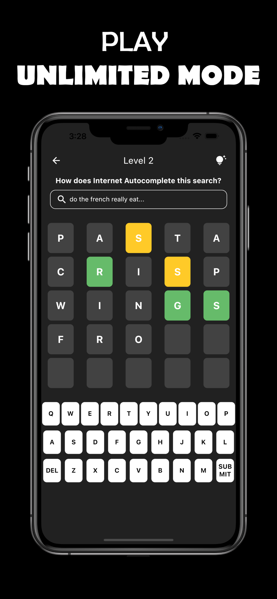 Feudle is not only a fun and challenging game, but it's also a great way to improve your vocabulary and knowledge about different topics. Whether you're looking to kill some time or want to challenge your friends to see who can guess the most phrases correctly, Feud is the perfect game for you. Guess autocomplete words on the internet!