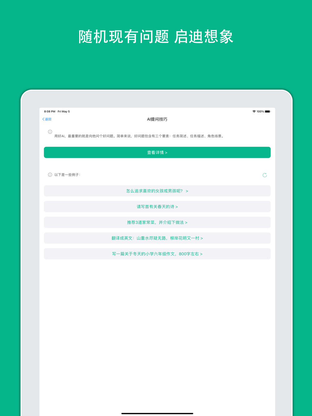 您可以用他来制作各种计划及各种总结,询问他各种问题。
