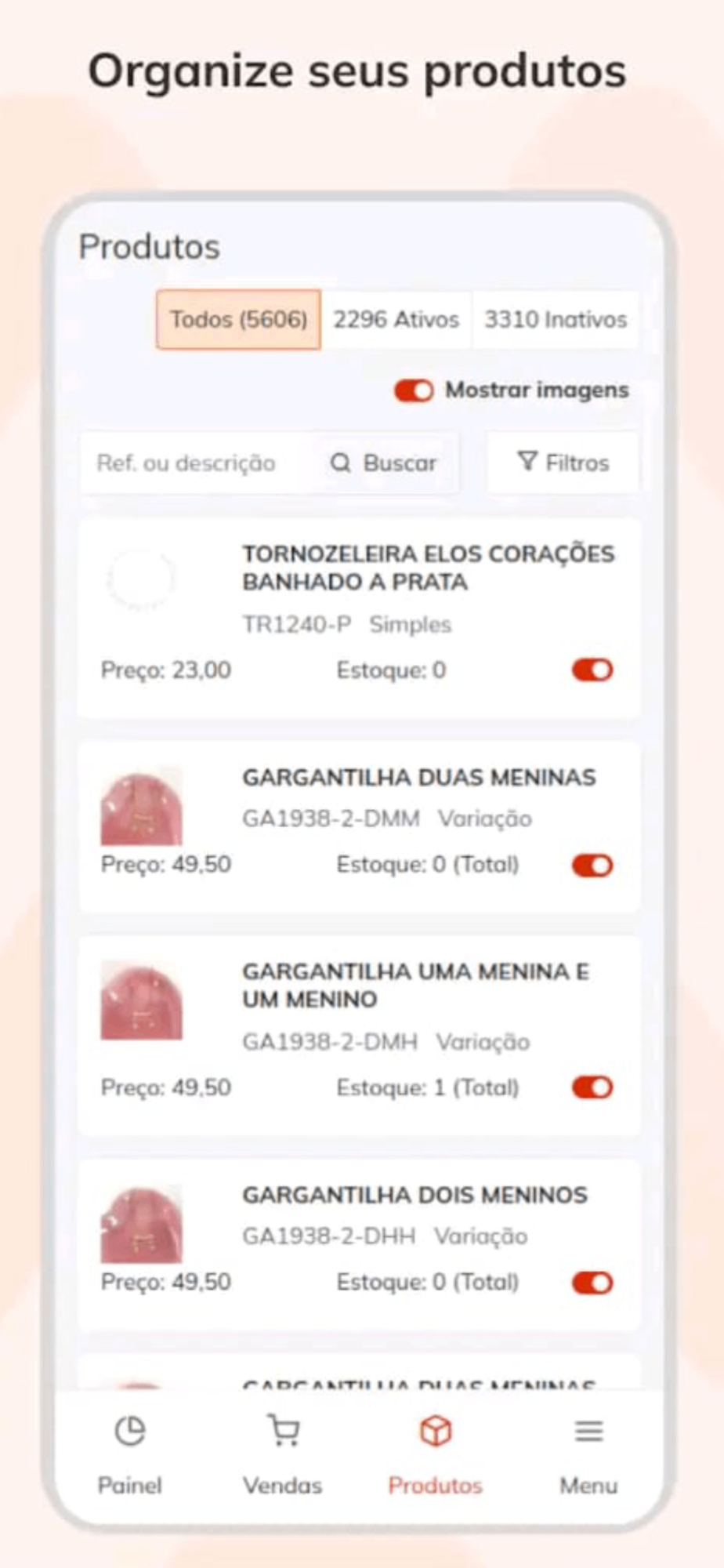 - Consulte, ative ou desative itens a qualquer momento, mantendo seu catálogo sempre atualizado.