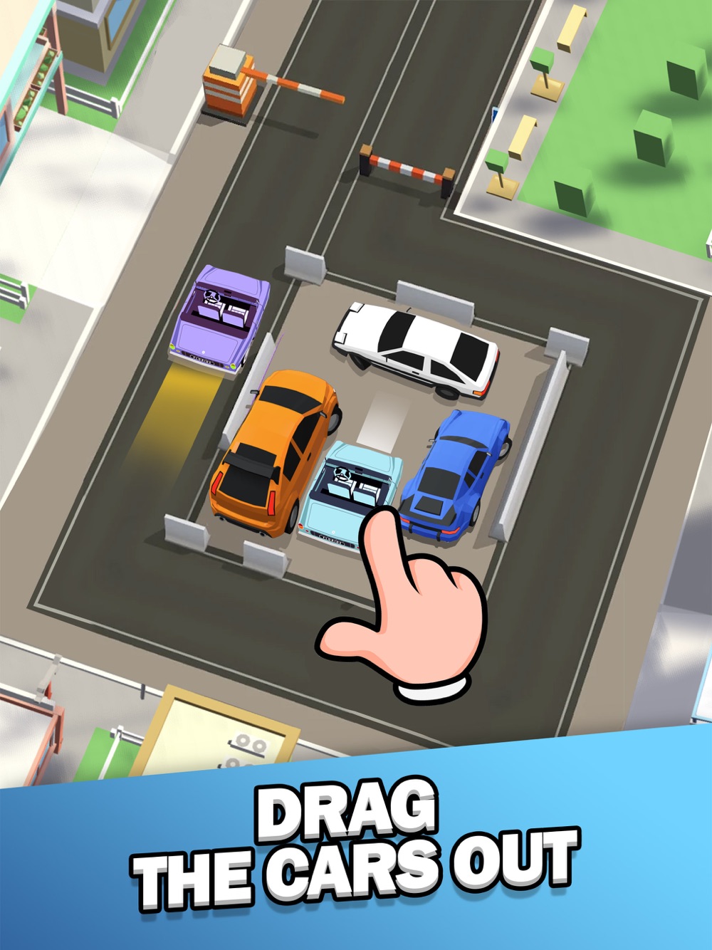 Drag all the cars out of the parking lot by picking the right car in the right order. Clear the parking lot and get all the cars on the road now!
