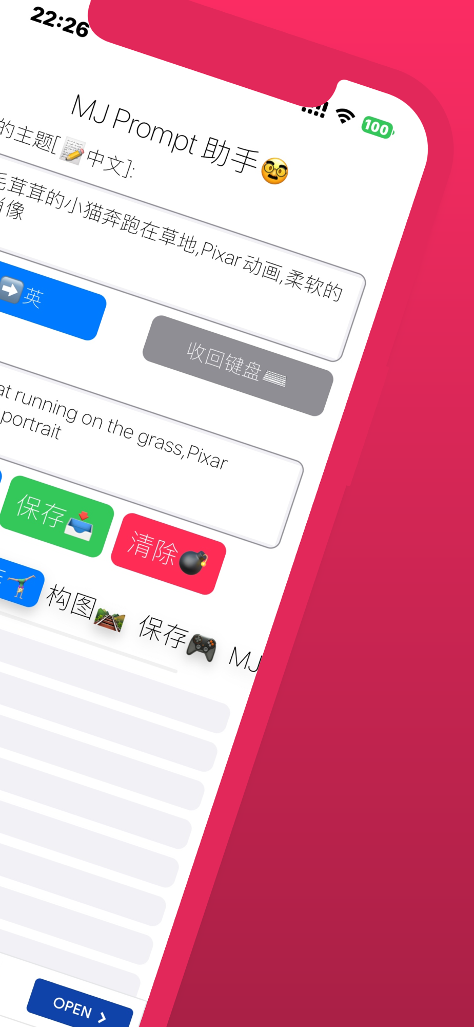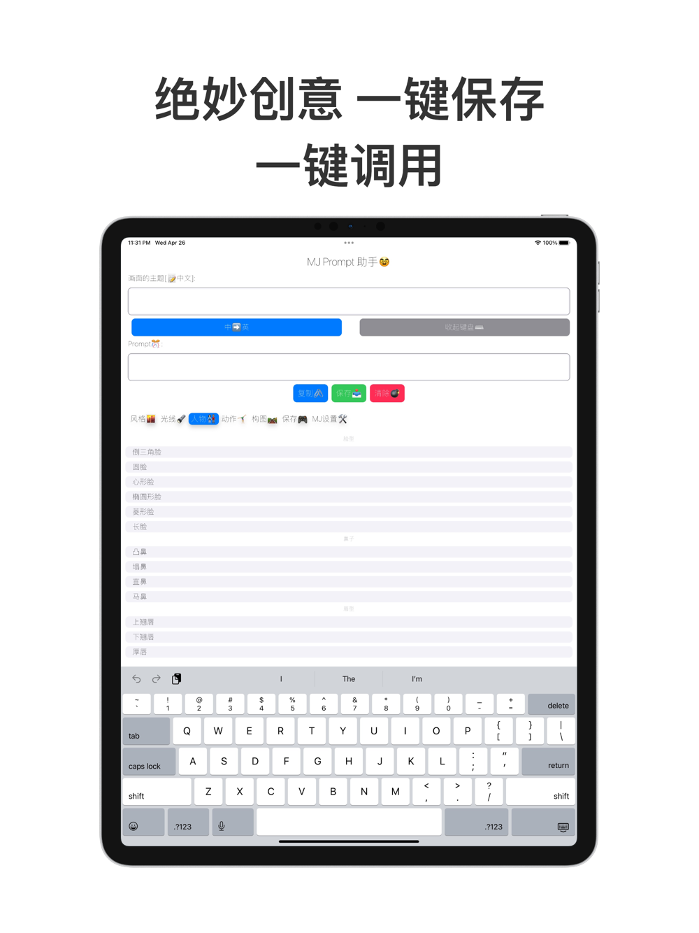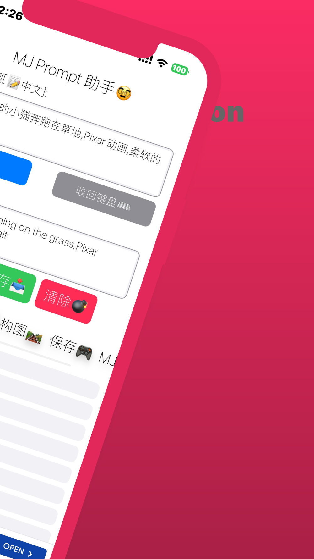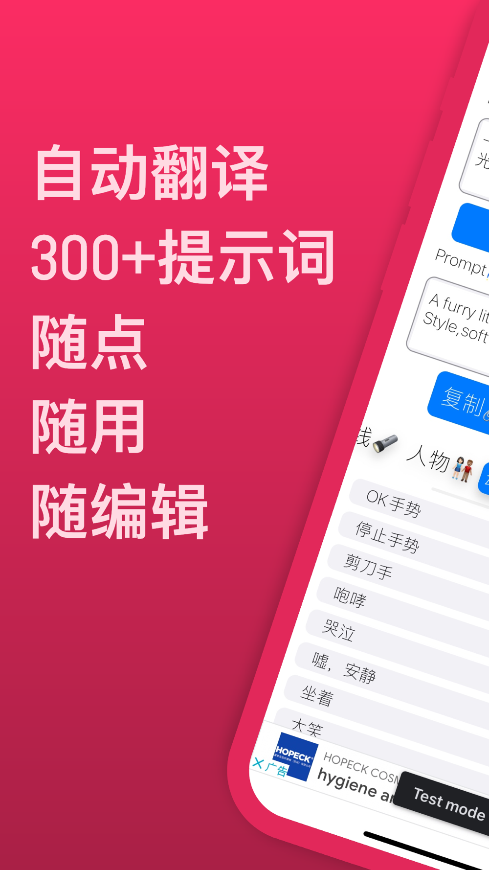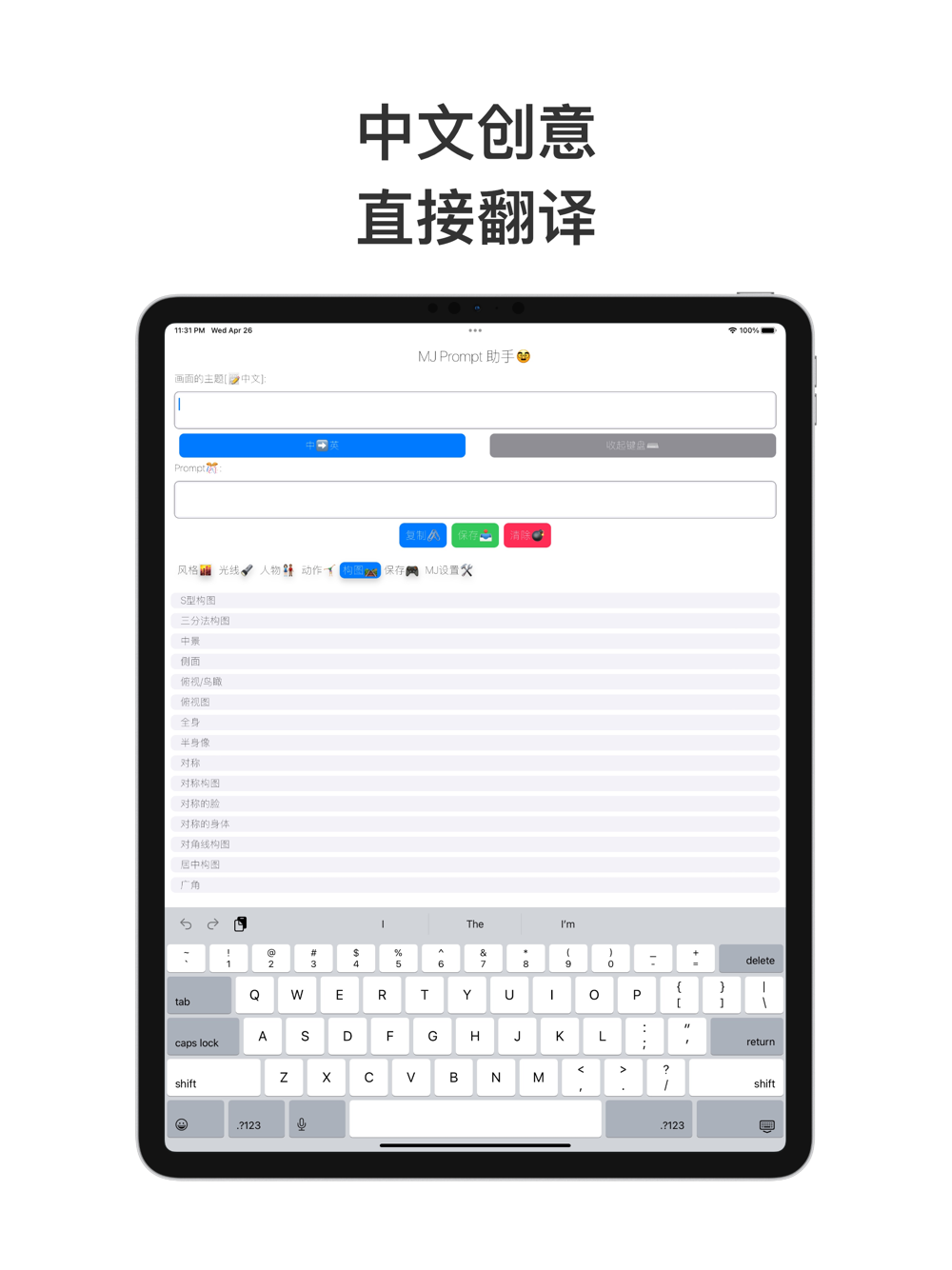 Prompt助手可以翻译您的中文绘画描述,同时为您提供大量专业的Prompt词汇,让您突破语言、词汇障碍,尽情释放创意。