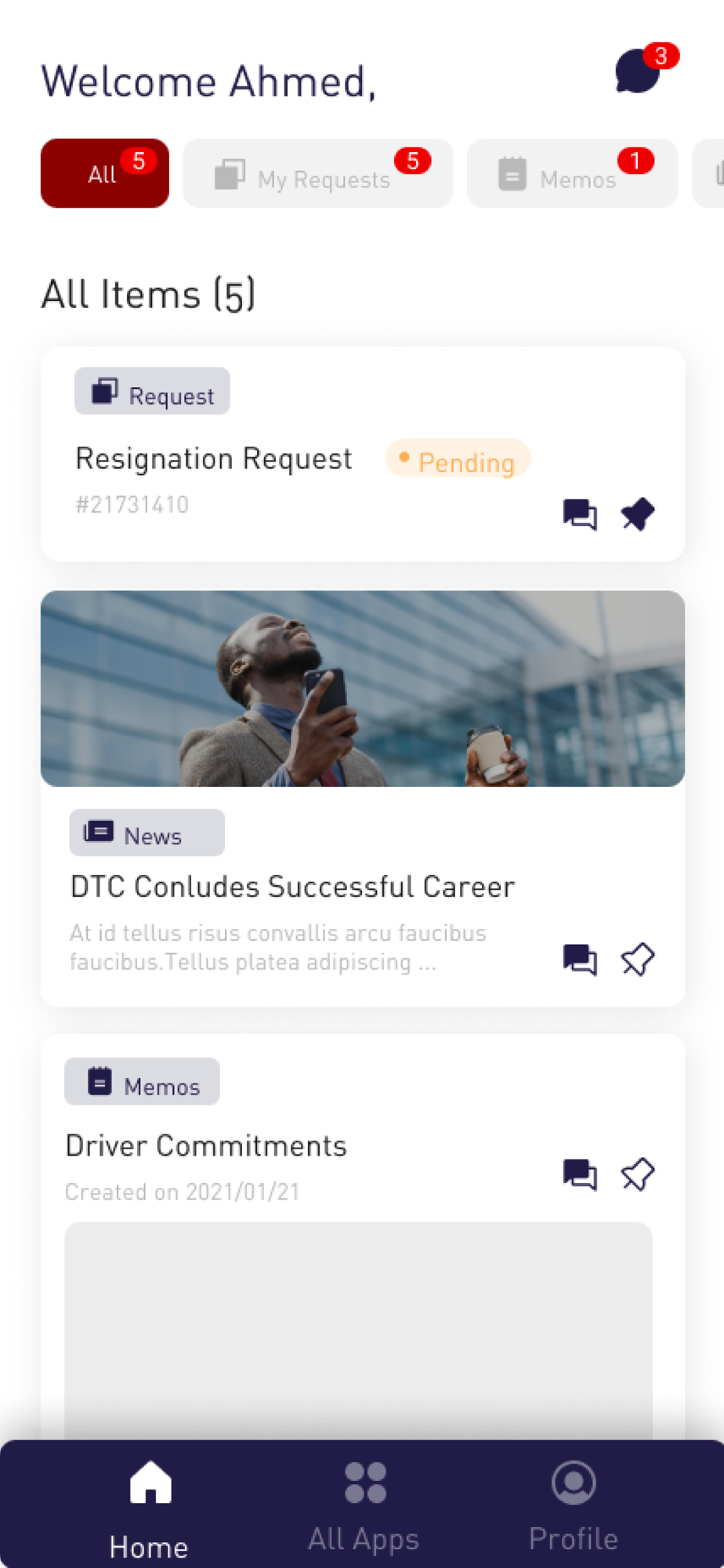 Dubai Taxi Corporation (DTC) is offering to its Employees (Drivers and Staff) a self-service application to self-inquire internal HR services, making the overall process more convenient and swift and provide high quality services.