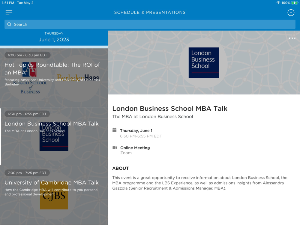 The MBA Tour & The Master’s Tour connects you with top business schools from around the world. Join us at a free upcoming event to speak directly with leading programs, improve your application, get exclusive GMAT™ Exam tips from the exam creators & more! Register for our events on our website.