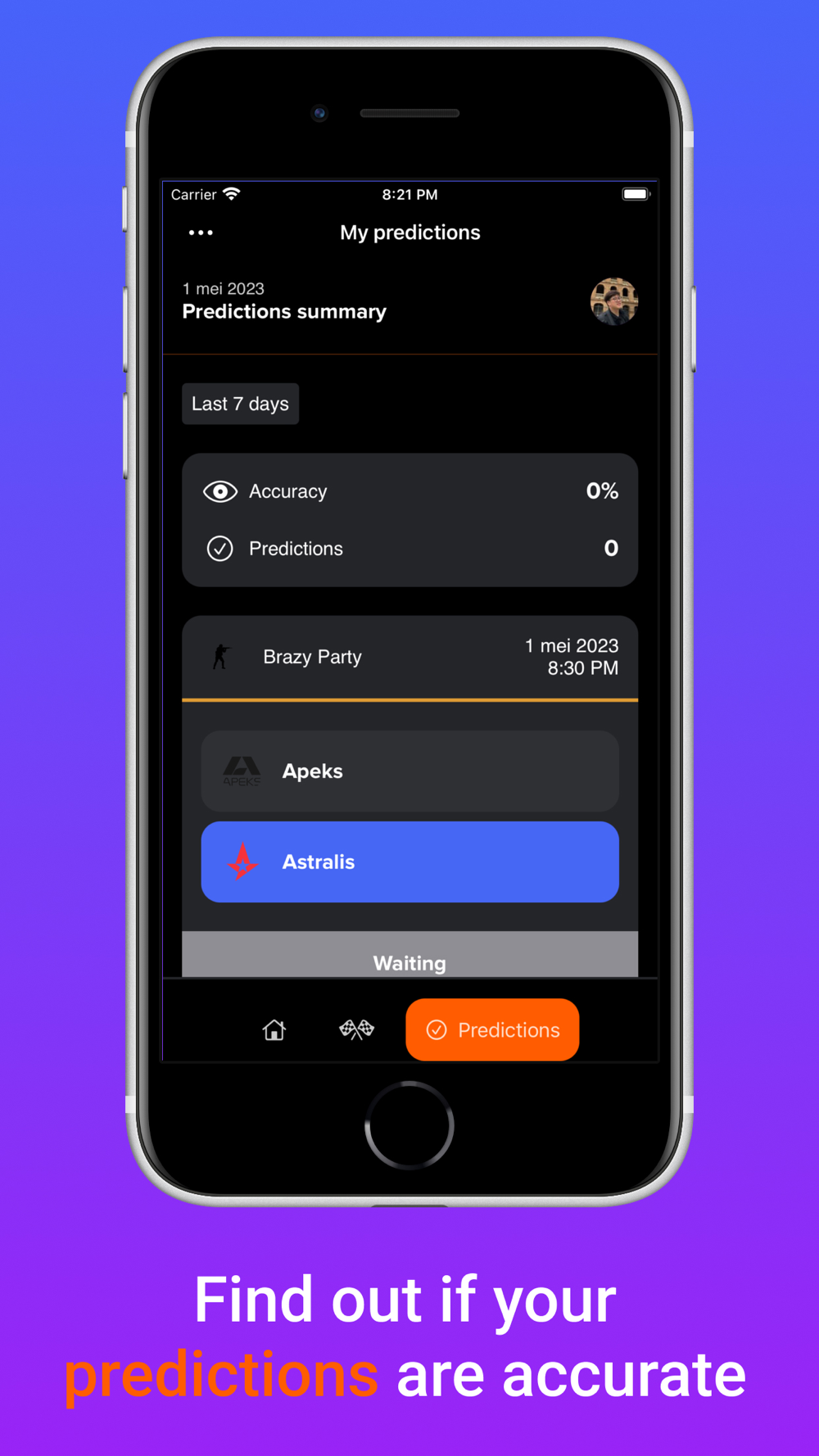 * Track Your Predictions: Monitor your prediction performance and watch your success rate soar as you become an esports prediction master.