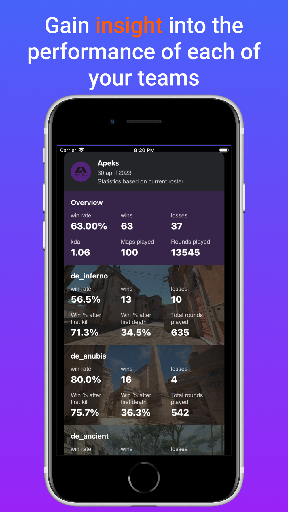 * Detailed Team Data: Get information on competing teams, including win rates, maps played, kills, and more. Make informed predictions with Esportsfort's comprehensive team statistics. (LoL and CSGO)