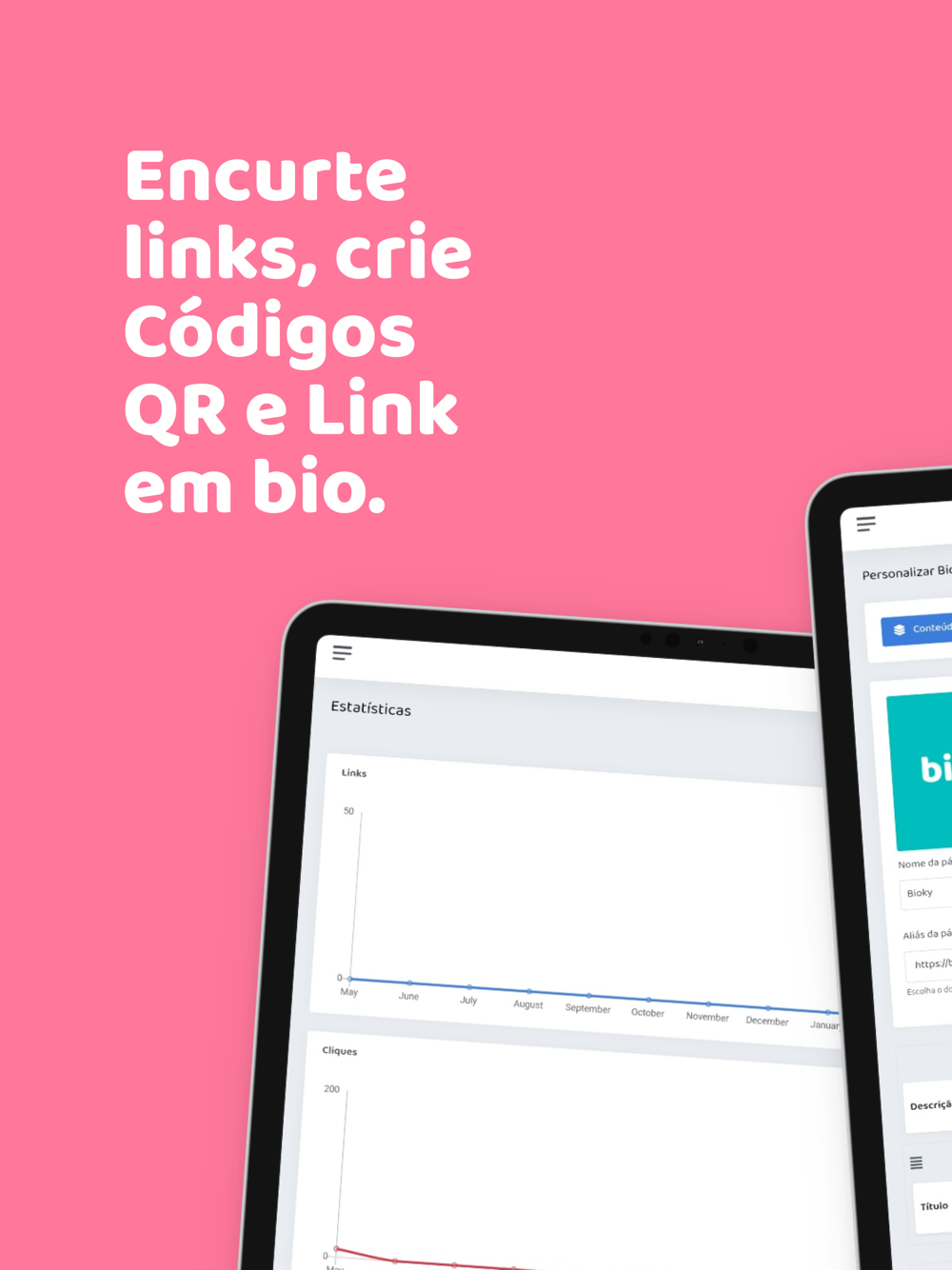 Links curtos, resultados grandes. O Bioky Link é o seu parceiro para marketing pessoal ou corporativo. Não é apenas uma ferramenta, é um aplicativo poderoso que irá te ajudar a crescer e engajar. Confira os principais recursos: