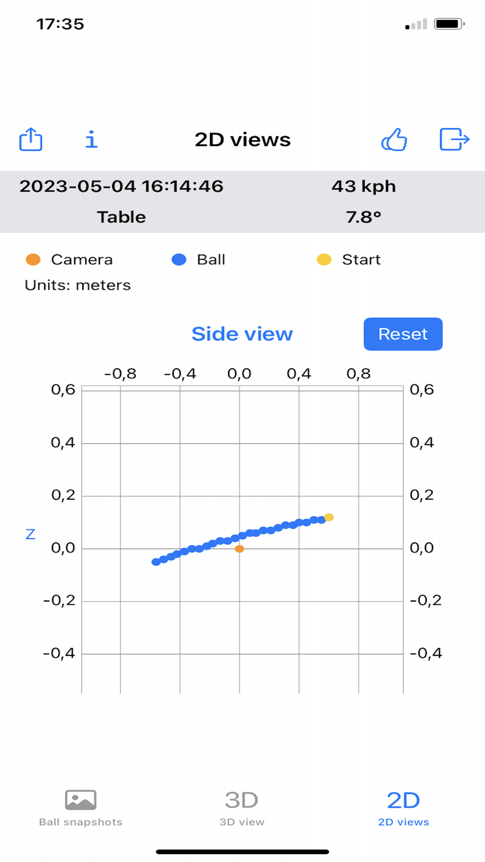 In the 'My Speedup' section of the SPEEDUP Live web interface, the trajectories of the balls may also be visualized in three dimensions. Besides its fun aspect, a 3D visualization may also bring valuable information about the quality of your shot.