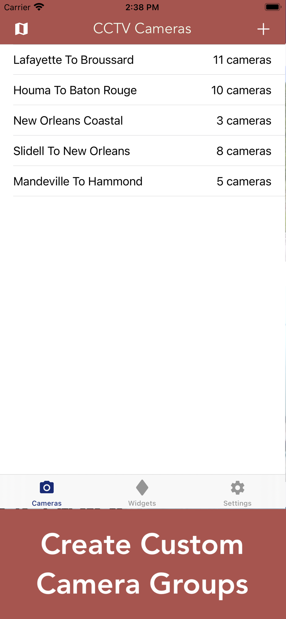 Create custom groups of cameras based on your frequented routes and then simply scroll through the list of images. This makes viewing traffic and road conditions significantly faster. If you prefer to view a single camera at a time, this option is also available.