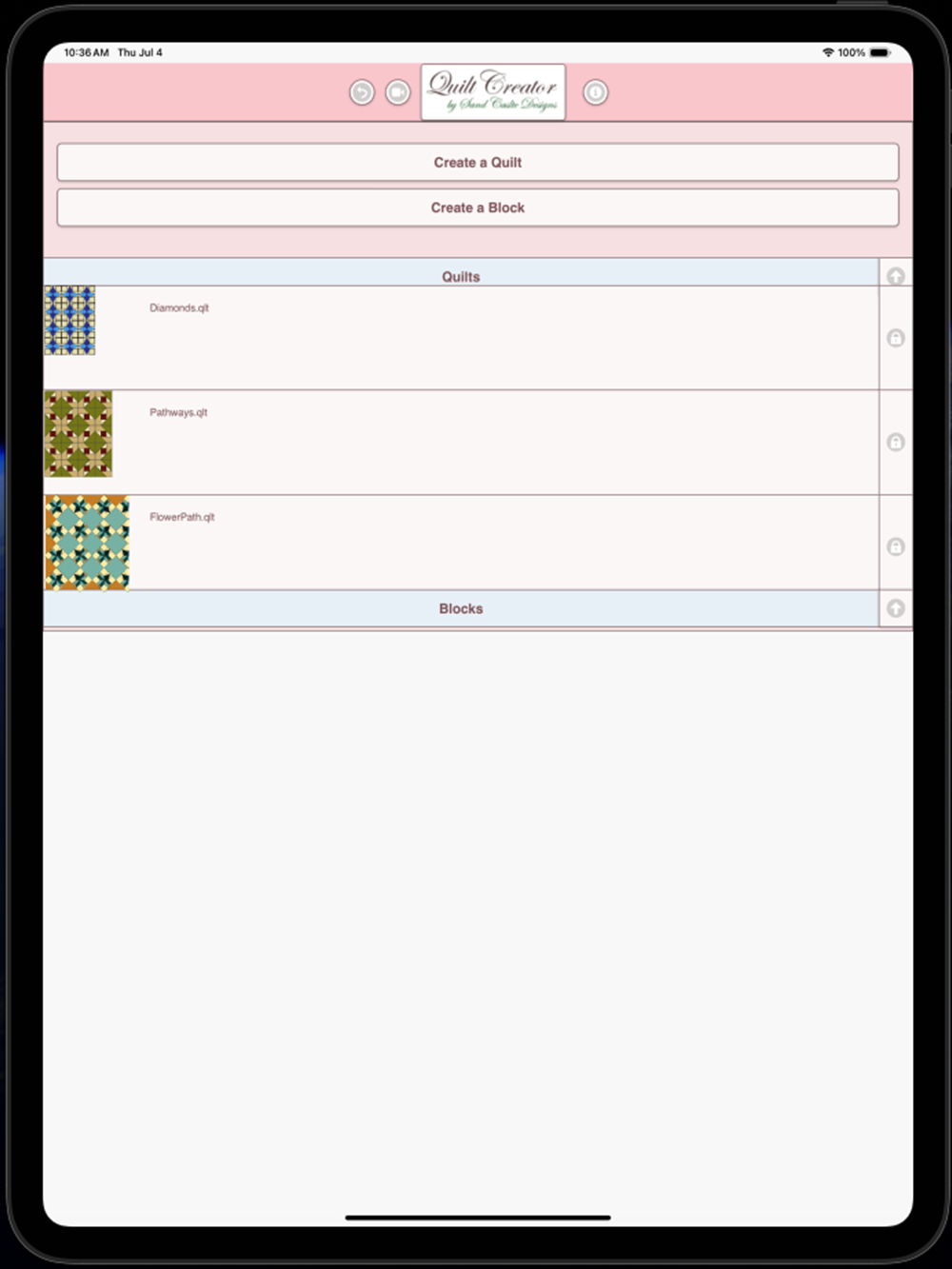 Create quilts using over 200 quilt blocks to select from. You can change the colors in the blocks to get the look you want.